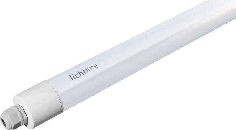LED-Feuchtraumleuchte mit Durchgangsverdrahtung für den Innen- und Außenbereich. Einfache, schnelle Montage an Wand oder Decke dank beiliegenden Befestigungsklemmen mit Schnellverschluss. Befestigung möglich über die komplette Leuchtenlänge. Vorhandene Bohrlöcher können zur Montage verwendet werden. Die Lichtfarbe kann über einen Schalter eingestellt werden (4000K, 5000K, 6500K). Die glatte Oberfläche hat eine geringe Verschmutzungsneigung und ist leicht zu reinigen. Die Leuchte ist staubdicht, geschützt gegen Strahlwasser, schlagfest bis 5J und geeignet für den geschützten Außenbereich. Gleichmäßige Lichtverteilung durch Umfassung der LEDs mit einer diffusen Polycarbonat-Röhre. Das Vorschaltgerät ist in die Leuchte integriert. Lange Lebensdauer, sehr hoher Lichtstrom, gute Farbwiedergabe, breit strahlend, flickerfrei. Geringer Wartungsaufwand. Energieeinsparung bis zu 70% gegenüber einer herkömmlichen Feuchtraumleuchte. Besonders geeignet zur Montage bei geringen Deckenhöhen und hohem Anspruch an die Widerstandsfähigkeit. Bruchsicher, geeignet für den Einsatz in IFS-zertifizierten Bereichen.