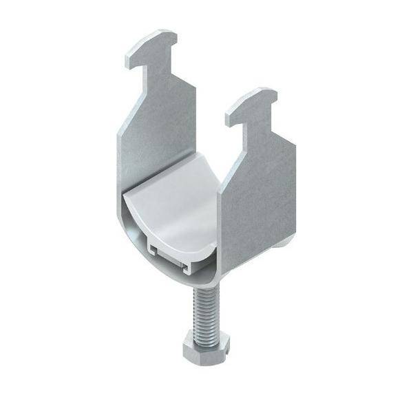 Hammerfuß-Bügelschelle, mit Kunststoffdruckwanne aus PP, halogenfrei, Wanneneinlage bandverzinkt nach DIN EN 10346, Hammerfußbügel tauchfeuerverzinkt nach DIN EN ISO 1461, passend für NIEDAX Reihen-/ Ankerschienen (2910-2920) mit 11-12 mm Schlitzweite, Gegenwannen (GWA/GWS...) müssen gesondert bestellt werden. Belegung : 1 Kabel für Kabel-Ø : 12 - 18 mm