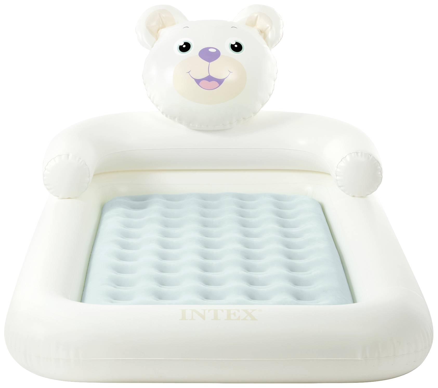 Das Luftbett-Set „Bear Kidz Travel Bed Set“ von Intex ist mit seinem Innenmaß von 71 x 132 x 10 cm perfekt für Kinder. Durch die samtweiche, plüschige Schlaffläche bietet dieses Kinder-Luftbett die perfekte Kombination aus Komfort und Vielseitigkeit. Der Rahmen mit süßem Bärenkopf sorgt dafür, dass Ihre Kinder nicht aus dem Bett rollen. Ob für Übernachtungen, für den Mittagsschlaf oder für Reisen, dieses Luftbett bietet die perfekte Schlaflösung für Kinder. Mithilfe der im Lieferumfang enthaltenen Handpumpe ist das Bett einfach und schnell aufgepumpt und einsatzbereit. Durch die praktische Aufbewahrungstasche kann das weiß-mintgrüne Bett einfach transportiert und verstaut werden. Geeignet für Kinder im Alter von 3 bis 6 Jahren. Ideal für den Innenbereich.