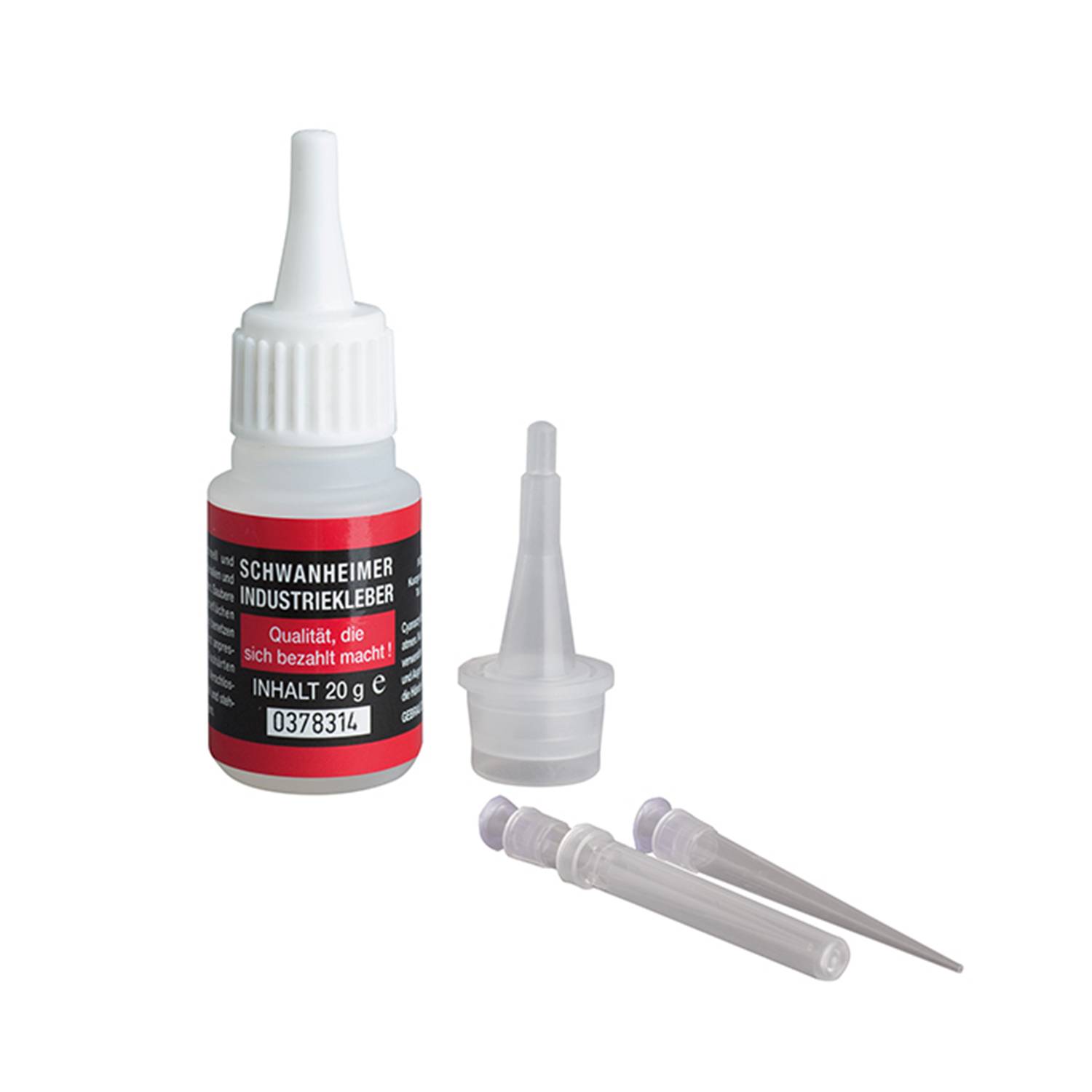 SCHWANHEIMER Industriekleber Set II, mit Kleber 20g, feiner Dosierspitze und Tropfer