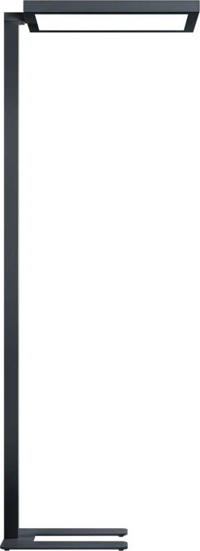 EPURIA Stehleuchte Einzelkopf in schwarz, Einzelkopf zur Beleuchtung von Einzel- und Doppelarbeitsplätzen mit Lichtverteilung direkt/indirekt, LED-Konverter im Leuchtenkopf, Direkt-/Indirektlicht separat nicht steuerbar. Leuchten Leistung: 92 W, Leuchte mit sensControl intelligenter Anwesenheitssteuerung und Helligkeitssensorik mit LED-Konverter, LED-Lebensdauer 50000 h bis zu einem Lichtstromrückgang auf 90 % des Anfangswertes. Farborttoleranz (initial MacAdam): 3. Leuchten Lichtstrom: 11350 lm, Leuchten Lichtausbeute: 123 lm/W. Farbwiedergabe Ra > 90, Farbtemperatur 4000 K. Gehäuse aus Aluminium. Abmaße Leuchtenkopf inkl. Kopfanbindung, 705 x 320 x 42 mm, Leuchte halogenfrei verdrahtet Gewicht: 17 kg