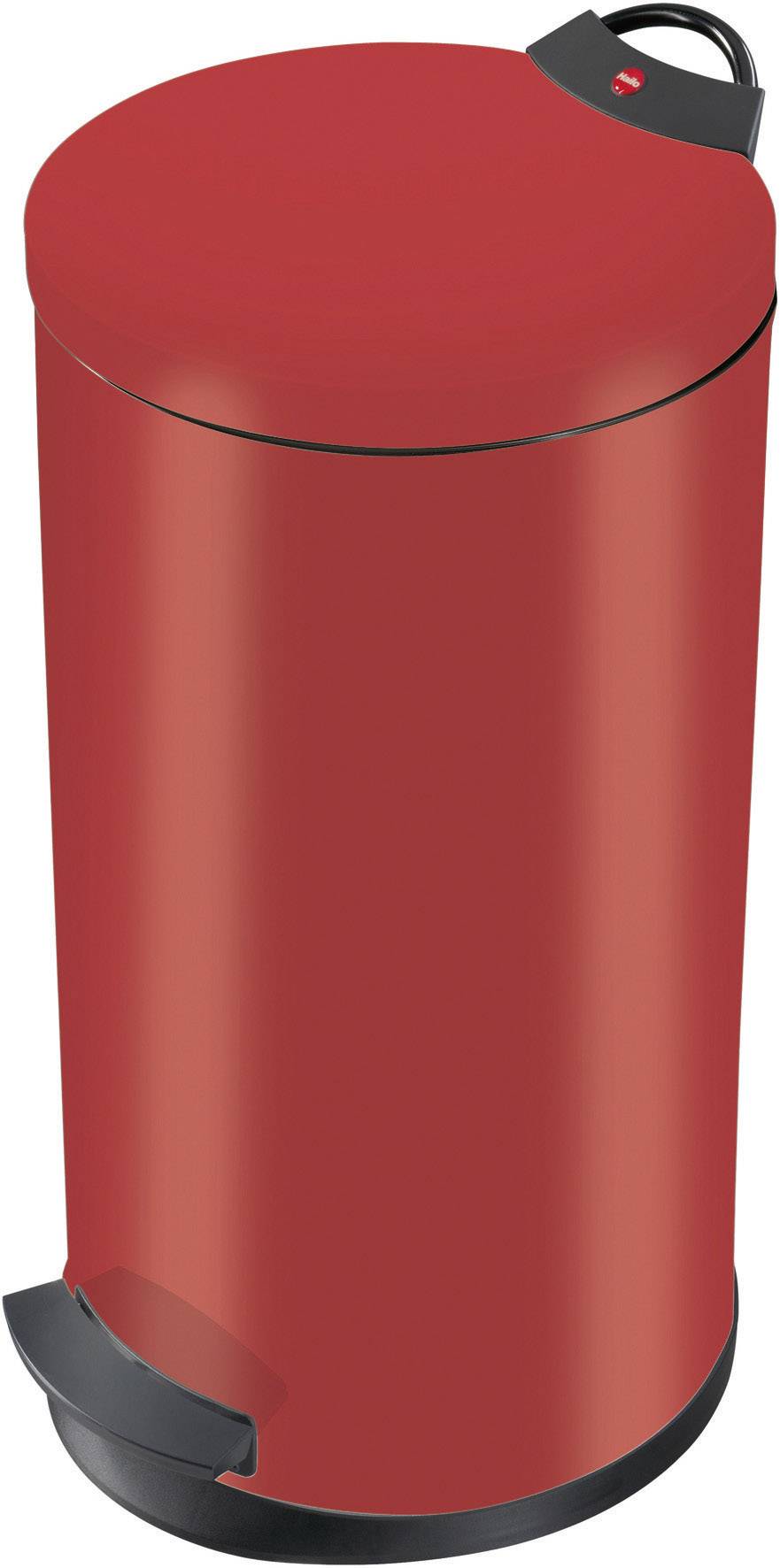 Geräuscharmes Schließen des Deckels · Anti-Vakuum-Effekt · Tragegriff aus elastischem, strapazierfähigem Kunststoff (Elastomer) – verhindert Beschädigungen an der Wand · Teilbarer roter Griffbügel – Müllbeutelklemmung · Eventuell austretende Flüssigkeit sammelt sich in der Vertiefung des Inneneimers · Verdrehsicherung – Tragegriff immer an der richtigen Stelle · Größere Aufstandfläche für mehr Standsicherheit mit 3 Anti-Rutsch-Füßen · Innenliegende Tret-Mechanik: Schutz vor Beschädigung, leichte Reinigung.