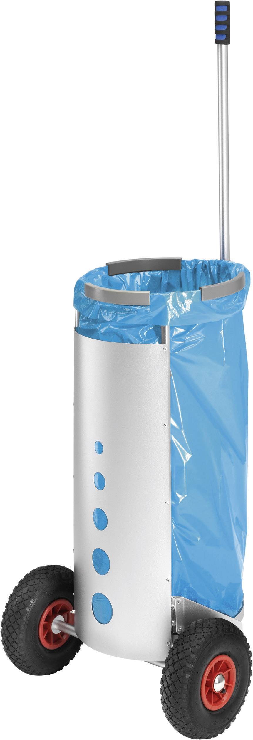Einfaches Handling · Neue Fahr-Ergonomie · Geringes Eigengewicht (ca. 6,5 kg) · Aluminium-Konstruktion · Einfache Selbstmontage · Luftbefüllbare Leichtlauf-Räder · Einklemmvorrichtung für Müllsäcke bis zu 120 l · Schutzvorrichtung für Leichtlauf-Räder.