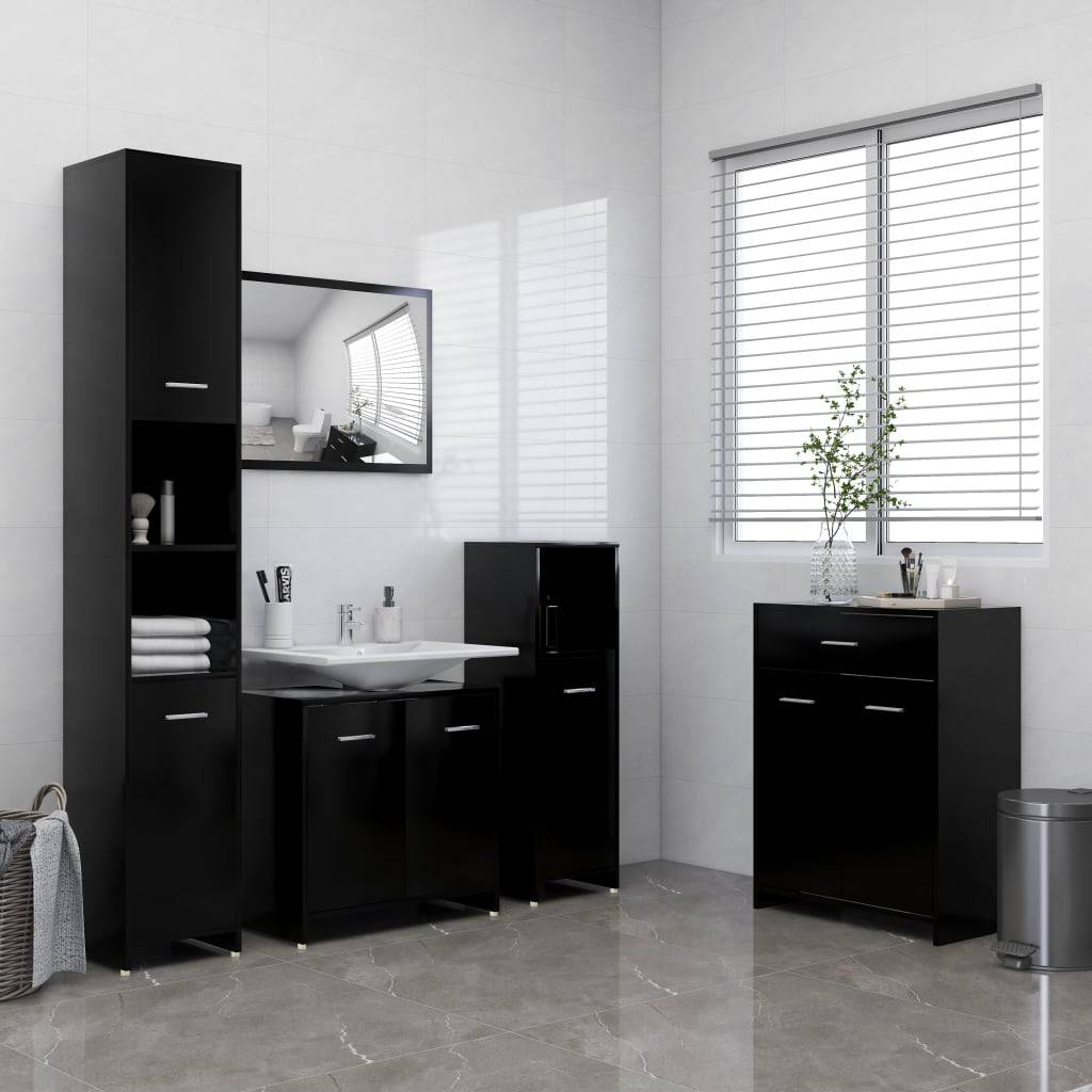 Mit diesem 4-teiligen Badmöbel-Set können Sie zusätzlichen Stauraum im Ihrem Badezimmer schaffen. Die klaren Linien und das schlanke Design fügen sich perfekt in Ihr Zuhause ein.