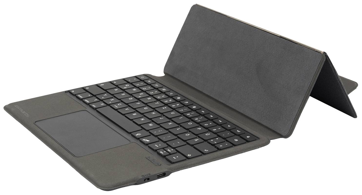 Mit dem Solid Pro Keyboard kannst du dank der Bluetooth Low Energy Technologie länger arbeiten. Verwandelt dein Tablet in einen vollwertigen Computer mit einem Trackpad, der mit Android, iOS und sogar Windows kompatibel ist. Du kannst das Solid Pro Keyboard auf der Couch oder abends vor dem Fernseher verwenden. Dank der Tastatur-Hintergrundbeleuchtung werden deine Augen nicht mehr bei der Suche nach der richtigen Taste zu stark beansprucht. Aufgrund des ausgewogenen Druckpunkts ist das Tippen sehr angenehm und effizient - auch bei langen Texten. Der integrierte Ständer des Tastaturgehäuses ermöglicht dir aufgrund des hochwertigen und langlebigen Metallscharniers den perfekten Blickwinkel. Das zeitlose und elegante Design des 4smarts Solid Pro Keyboard passt perfekt zu deinem Tablet. Führe alle üblichen Tastenkombinationen mit einem einzigen Tastendruck aus. Das präzise Trackpad unterstützt Multi-Touch-Gesten. Dank des integrierten Akku für ca. 100 Stunden Betriebszeit benötigt man kein Kabel zum Verbinden. Der Anschluss am Tablet bleibt frei für anderes Zubehör.