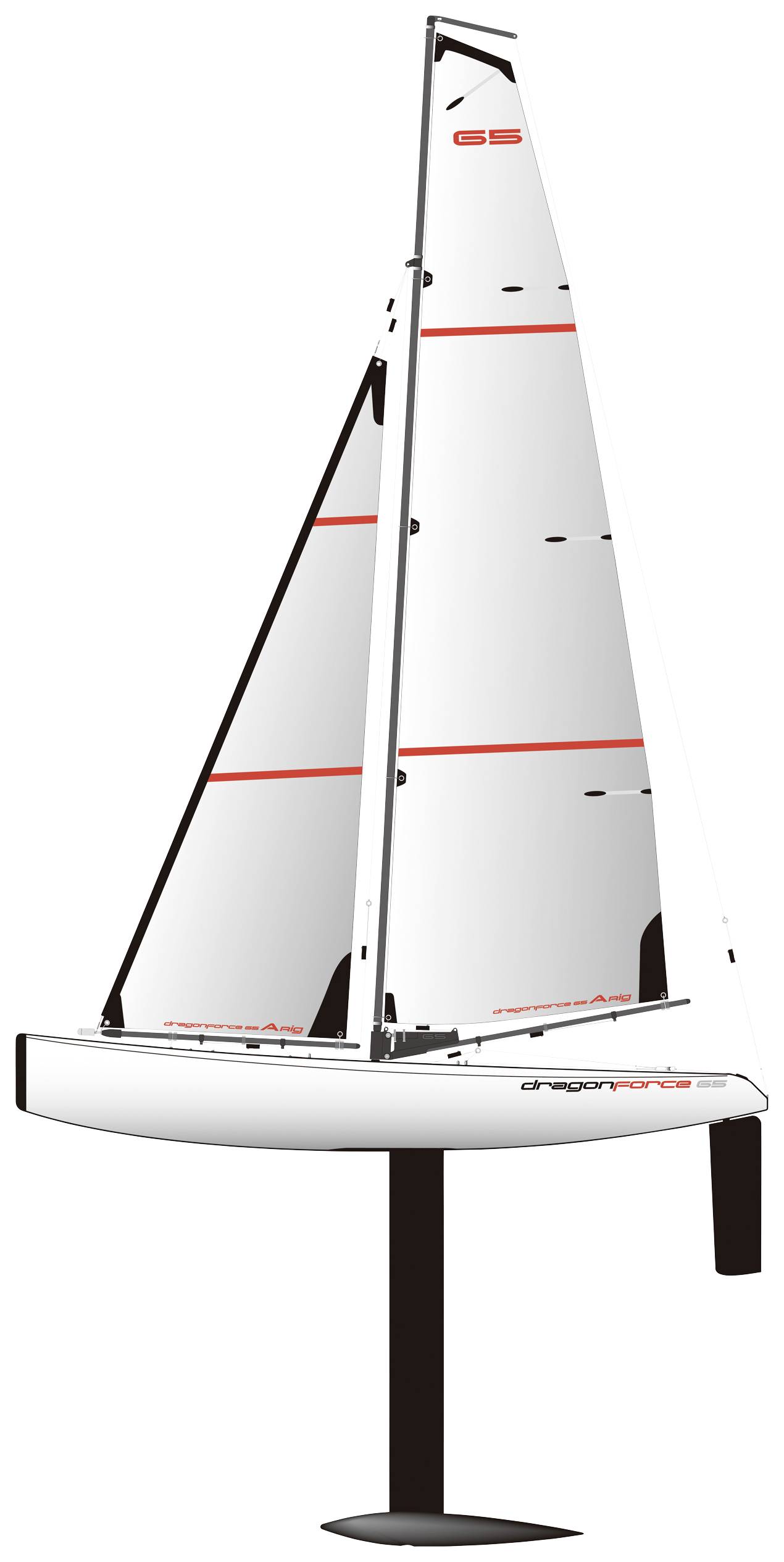 Die Segel der Dragon Force 65 bestehen aus Mylar, der leichtesten Folie bei höchster Festigkeit, die hergestellt werden kann. Das digitale Ruderservo besitzt ein Metallgetriebe und Mast und Baumrohre sind aus Kohlefaser produziert, Kohlefasermast, Auslegerrohre und Aluminiumkiel sind stranggepresst und die Ballastkugel besteht aus einer Zinklegierung. Als zentrale Einheit dient ein vollständig lackierter, geformter ABS-Rumpf, der für den Einsatz in Süßwasser empfohlen wird.
