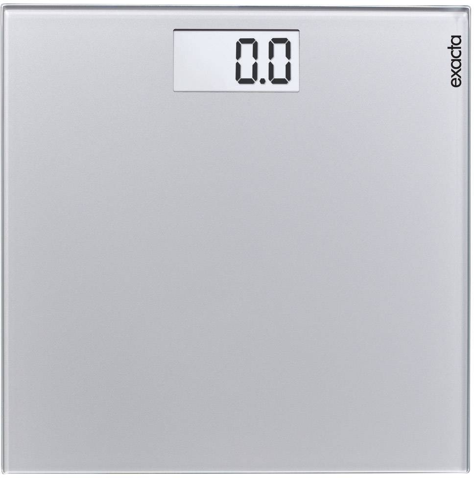 Flach und elegant in silber bietet die digitale Personenwaage Exacta Comfort ein großes LCD-Display für besonders gut lesbare Ziffern. Die große Trittfläche aus Sicherheitsglas und die praktische Tap-On-Funktion sind komfortable Begleiter.