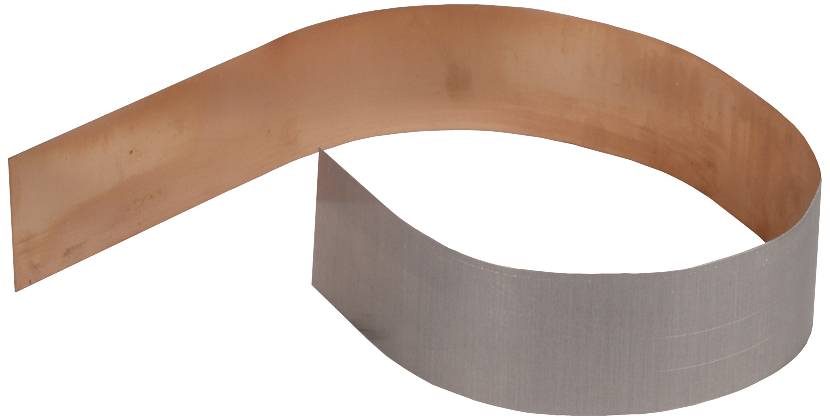Cupalblech in Streifen, für korrosionsbeständige Verbindungen zwischen Stahl oder Aluminium und Kupfer. Ausführung Breite 40 mm.