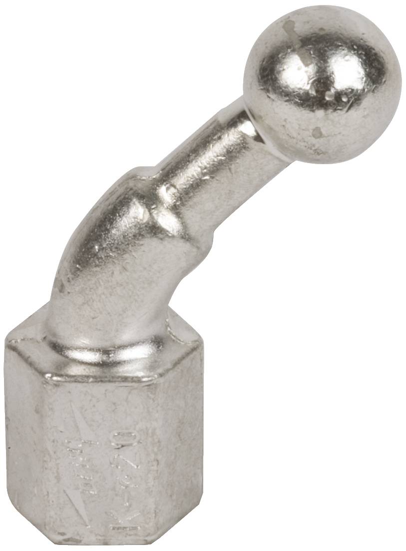 Kugelfestpunkt 45° abgewinkelt, mit Innengewinde als phasenseitige und erdseitige Anschließstelle nach DIN VDE 0683-100 (EN/IEC 61230) am Leiter und Erdungsanlage. Hohe mechanische Festigkeit durch spanlos geformtes Gewinde. Dadurch auch als Kabelschuh- und Stromschienen-Verschraubung nach DIN 43673-1 geeignet.
