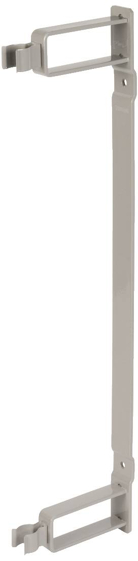 Haltevorrichtung für Spannungsprüfer und Erdungsstange beliebiger Länge. Lochabstand 390 mm, Bohrungen Ø7 mm für einfache Wandmontage.