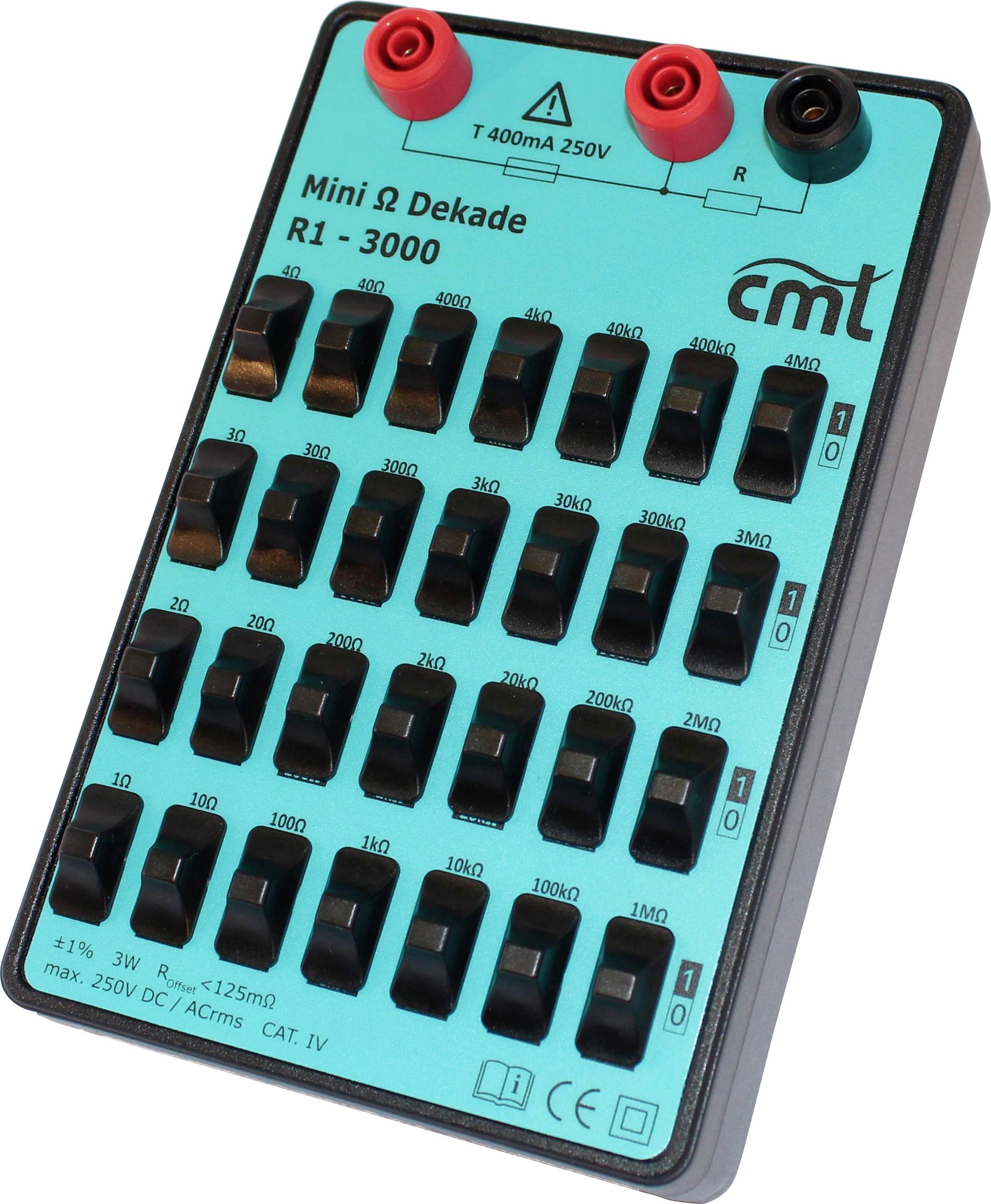 Die R1 - 3000 bietet gegenüber der R1 - 1000 eine höhere maximale Leistung von 3 W. Zusätzlich besteht die Möglichkeit, die Dekade durch Einsatz einer flinken Feinsicherung vor Überlast zu schützen (standardmäßig wird eine 400 mA Sicherung ausgeliefert). Ein unabgesicherter Widerstandsabgriff gestattet, den Innenwiderstand der Sicherung zu umgehen. Dadurch wird eine erhöhte Genauigkeit insbesondere bei kleinen Widerstandswerten erreicht.