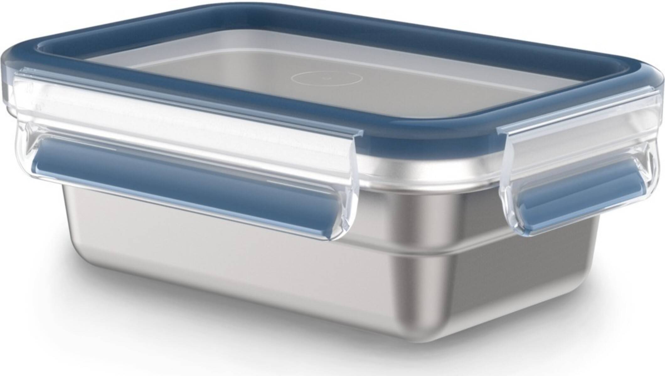 Clip&Close, eckig, 0,5 l, hygienisch, leicht und langlebig, besonders robust und bruchsicher dank rostfreiem Edelstahl, Deckel aus langlebigem Kunststoff, bis zu 250 °C ofenfest (gilt für die Edelstahldose), gefrierfest, Stapelkante für einfaches Ineinanderstapeln, 100 % dicht