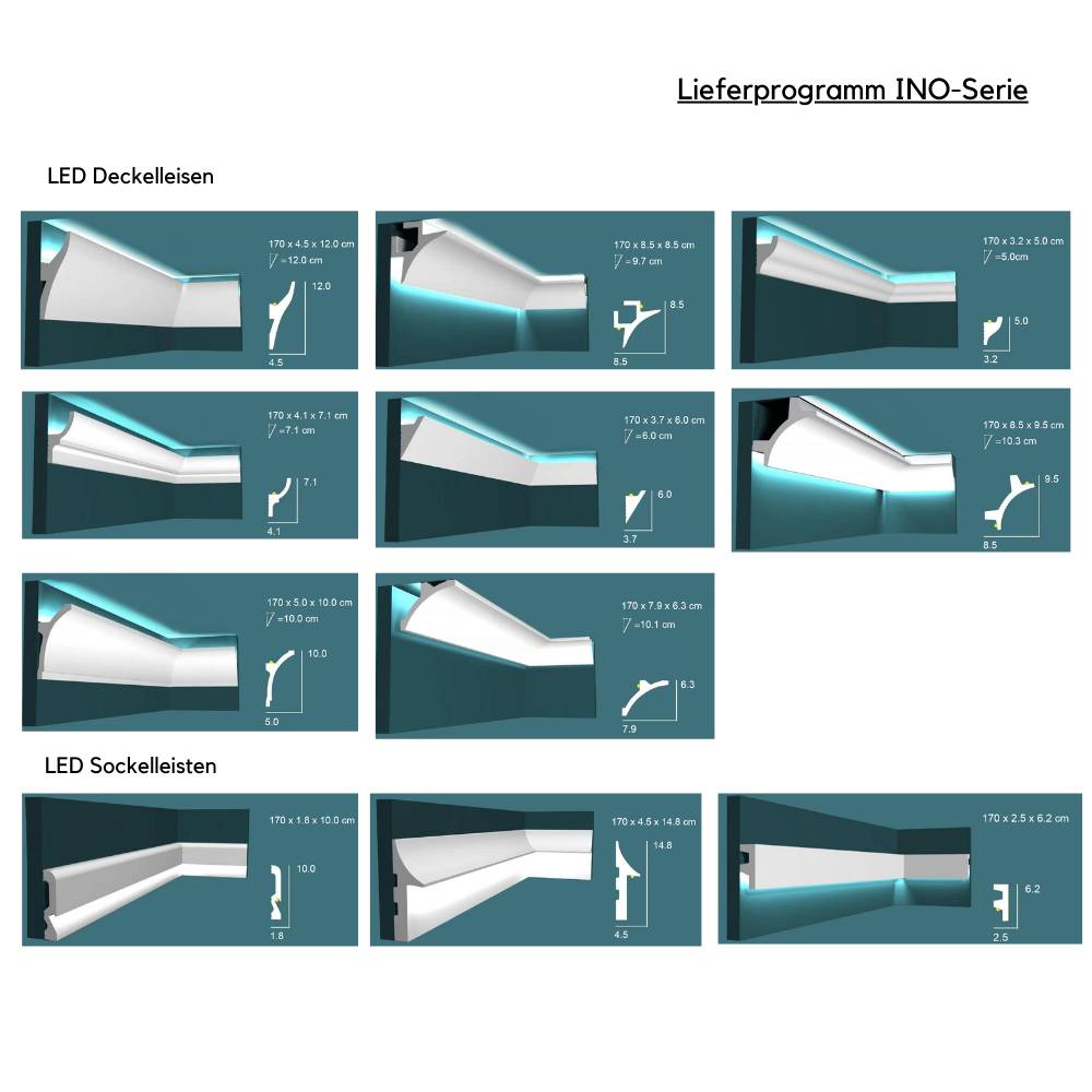 Sockelleisten Deckenleisten LED leicht & robust Stuckleisten 51M Lichtleisten Fußleisten INO-12