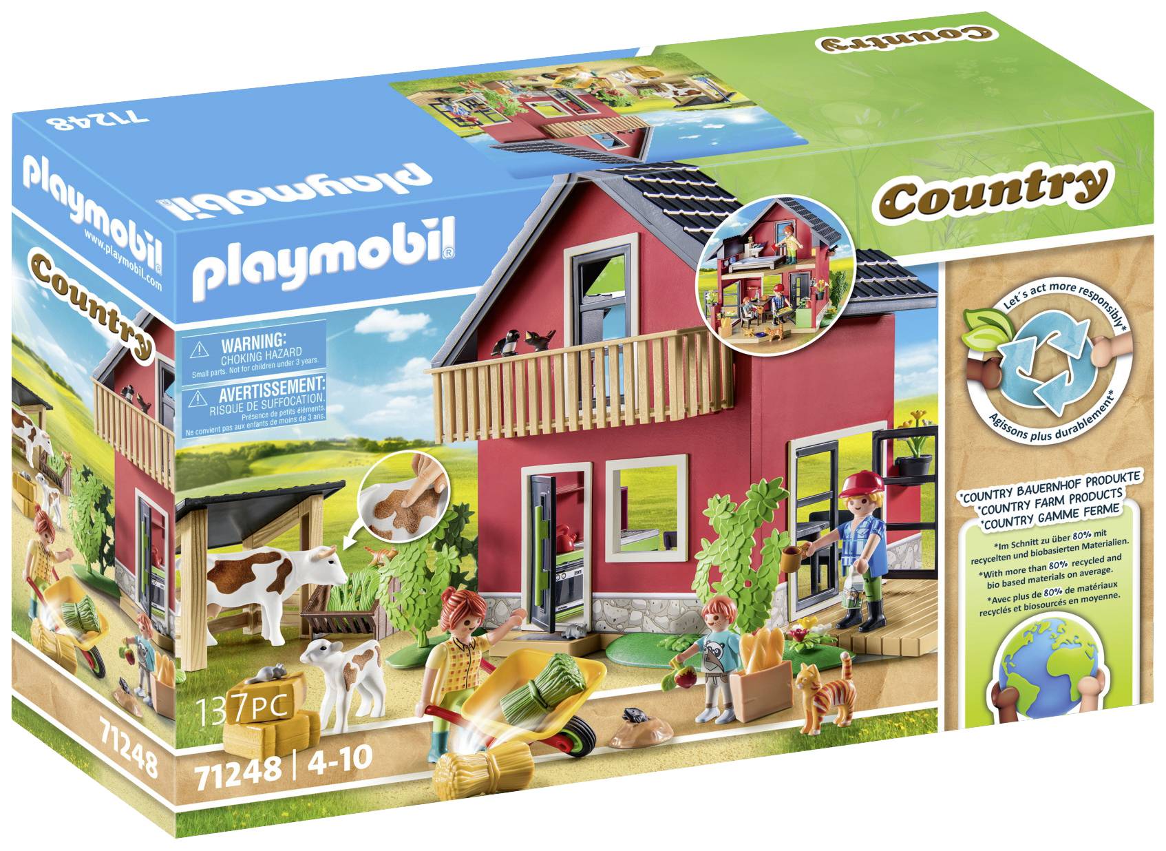 Bauernhaus. Wohnhaus mit liebevoll eingerichteten Wohn- und Schlafbereichen. Eine große zweiflügelige Tür im Erdgeschoss führt auf die Terrasse. Im Set enthalten sind viele Tiere zum Hegen und Pflegen. Eine Kuh ist beflockt als Fellimitation zum streicheln. Ein kleiner Stall dient den Tieren als Unterstand. Maße: 29 x 22 x 25 cm (L x T x H).