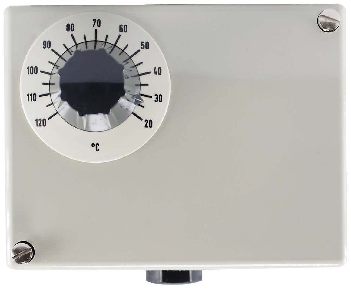 Durch sein schlagfestes Gehäuse mit hochwertigem Kunststoffdeckel und Aludruckguss Unterteil ist der mechanische Aufbaubaudoppelthermostat sehr robust und kann auch unter rauen Bedingungen eingesetzt werden. Das Gerät besteht aus einem Temperaturregler und einem Sicherheitstemperaturwächter (STW). Die Temperatureinstellung des Temperaturreglers erfolgt mit Hilfe eines Sollwerstellers auf einer Skala. Die gewünschte Abschalttemperatur des Sicherheitstemperaturwächters kann nach Abnahme des Gehäusedeckels mit Hilfe eines Schraubendrehers auf einer Skala eingestellt werden. <,br>,Der Temperaturregler zeichnet sich durch eine hohe Schaltpunktgenauigkeit von +0/-1,5 % im oberen Skalendrittel aus und hat eine Schaltdifferenz (Hysterese) von ca. 3 bis 4 % des Skalenumfangs. Er schaltet nach Erreichen des Abschaltpunktes ab und nach Unterschreiten der Abschalttemperatur um den Wert der Schaltdifferenz automatisch wieder zurück in den Ursprungszustand. <,br>,Der Sicherheitstemperaturwächter zeichnet sich durch eine hohe Schaltpunktgenauigkeit von +0/-5 % im oberen Skalendrittel aus und hat eine Schaltdifferenz (Hysterese) von ca. 4 bis 6 % des Skalenumfangs. Er schaltet nach Erreichen des Abschaltpunktes ab und nach Unterschreiten der Abschalttemperatur um den Wert der Schaltdifferenz automatisch wieder zurück in den Ursprungszustand. Zusätzlich hat der Sicherheitstemperaturwächter eine Selbstüberwachungsfunktion, sodass bei Zerstörung des Messsystems der Stromkreis des STW bleibend geöffnet wird. Der Schaltkontakt des STW befindet sich dann in einer Neutralstellung, sodass keine Kontakte geschaltet sind. Weiterhin wird bei Abkühlung des Fühlers auf eine Temperatur unter ca. -20 °C der Stromkreis ebenfalls geöffnet, erst bei Temperaturanstieg über ca. -20 °C wird der Kontakt wieder geschlossen.<,br>,Ein entscheidender Vorteil ist es, dass zur Temperaturmessung keine zusätzliche Hilfsenergie benötigt wird. Der elektrische Anschluss erfolgt durch Schraubklemmen direkt an den verbauten Microschaltern, die eine maximal zulässige Schaltleistung von AC 230 Volt / 10 A direkt schalten können. <,br>,Die verwendeten Messsysteme arbeiten nach dem Flüssigkeitsausdehnungsprinzip und können bis zu einer maximal zulässigen Fühlertemperatur von 150 °C problemlos eingesetzt werden. Das Tauchrohr aus Messing, vernickelt, hat einen Durchmesser von 15 mm. Die Befestigung erfolgt durch ein Gewinde G 1/2 Form A nach DIN 3852/2. Die maximal zulässige Umgebungstemperatur am Gehäuse (Schutzart IP54) beträgt 80 °C.<,br>,Der Thermostat ist sehr flexibel einsetzbar und wird sowohl in der Heizungs-, Klima-, und Lüftungstechnik als auch in der Kunststoffindustrie, dem Apparate- und Maschinenbau sowie im Ofenbau, in Fernwärmeübergabestationen und zur Temperaturüberwachung in Labor und Klimaschränken angewandt. Das Gerät ist zugelassen gemäß DIN EN 14597 und DGRL und hat eine EAC Zulassung.