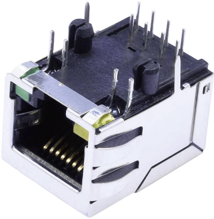 Modular-Einbaubuchse mit LEDs geschirmt mit Schirmlaschen Buchse, Einbau horizontal Pole: 8P8C SS74800-038F Vernickelt, Metall