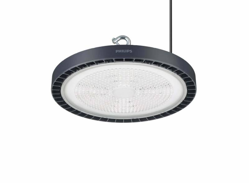 Philips CoreLine HighBay: Einfach zu installieren und innovativ! 25000 lm, 157 W, 160 lm/W, 50.000 Std. (L85), 100.000 Std. (L75), 4000 K, Ra 80, schaltbar, UGR = 25, Abmessungen: Höhe: 99 mm. , Durchmesser: 393 mmGehäuse: Farbe Dunkles Grau, Klar, IP65 , Schutzklasse:  I, IK08, ENEC Zeichen, Entflammbarkeitszeichen: F | Für Montage auf normal entflammbaren Oberflächen. CE-Kennzeichnung. Hersteller: Signify, Marke Philips. Produktbezeichnung: BY122P G5 LED250S/840 PSU WB