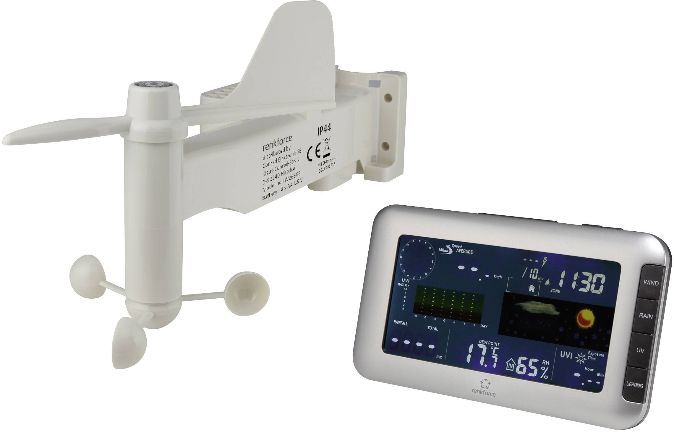 Funk-Uhr · Manuelle Zeiteinstellung möglich · Empfang abschaltbar · Einstellbare Zeitzone ±12 h · Luftdruck · Windrichtung · Windgeschwindigkeit (Speicherung der minimalen und maximalen Messwerte) · Niederschlagsmesser (Anzeige der täglichen, wöchentlichen, monatlichen und gesamten Niederschlagsmenge) · Blitzsensor (Entfernung und voraussichtliche Anzahl der Blitzeinschläge; Warnfunktion) · UV-Sensor (Tageshöchstwert, aktueller UV-Index, voraussichtliche Dauer der Gefährdung) · Luftfeuchte und Temperatur (innen und außen; mit Speicherung der minimalen und maximalen Messwerte) · Anzeige von Taupunkt, Hitze-Index und Windkühle · Eis-/Frost-Warnung · Alarm · Weckwiederholung · Kalender · 12/24 h Anzeige · Hintergrundbeleuchtung · Batterieniedrigstandsanzeige.