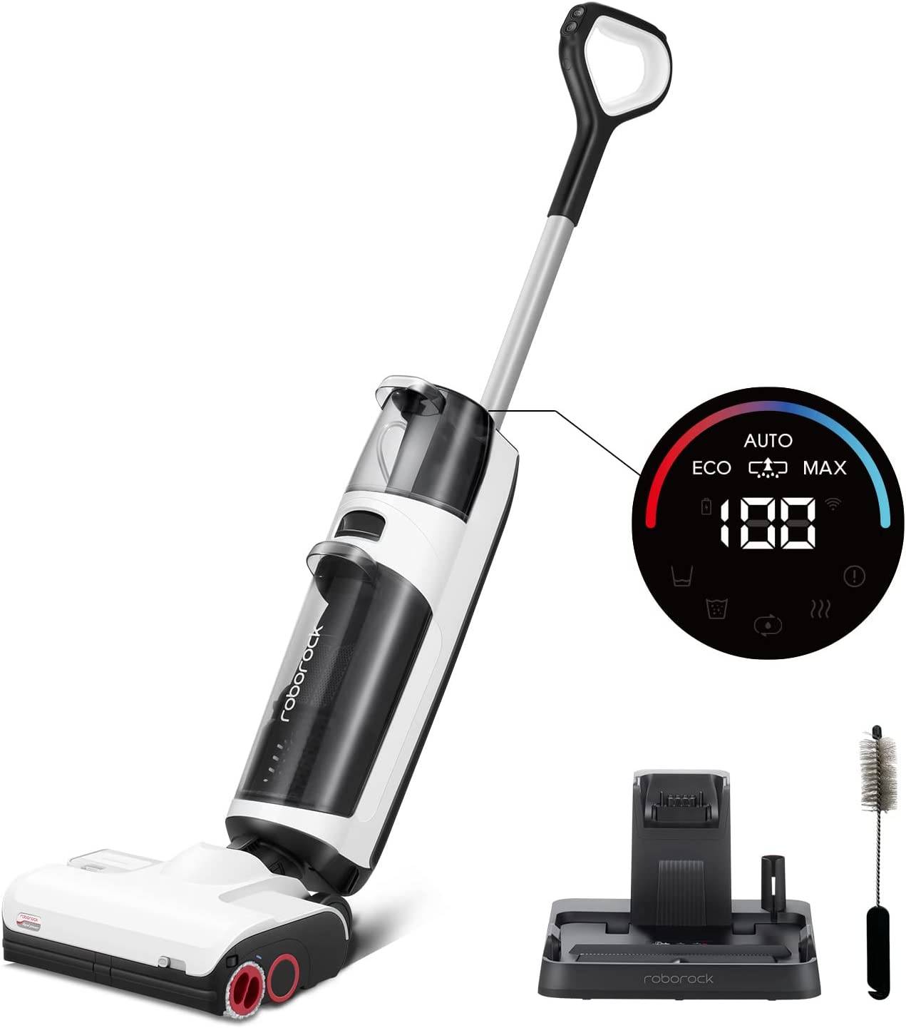【Doppelte Reinigungskraft】Der Roborock nass trockensauger verfügt über 2 Motoren vorne und hinten, die 3 Bürsten antreiben und eine überragende Saugleistung von 17,000 Pa erzeugen. Dank vertikaler Luftkanäle nimmt der Saugmopp sowohl nassen als auch trockenen Schmutz perfekt auf und erreicht eine Keimabtötungsrate von 99,9 %, indem er nur Wasser verwendet. Ein Akku mit hoher Kapazität kann bis zu 43 Minuten laufen und bis zu 300㎡ reinigen.