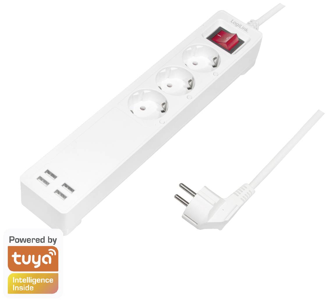 LogiLink SH0103 Schutzkontakt-Steckdose einzeln schaltbar, mit USB-Ladeausgang, per App steuerbar, programmierbar, Stromverbrauchsmessung, Überspan