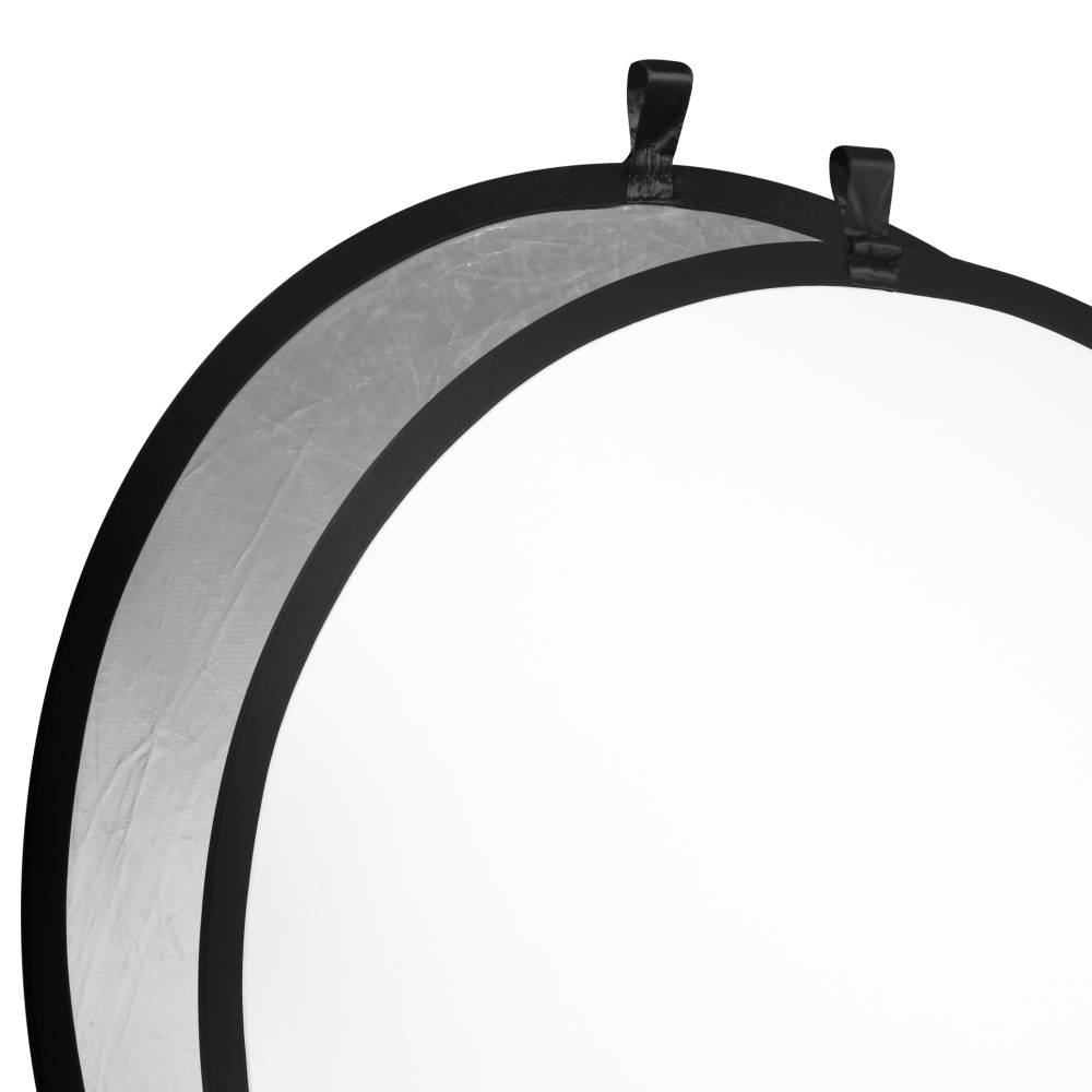 Der Reflektor mit silberner Beschichtung eignet sich sehr gut als Effektlicht in der Porträt- und Produktfotografie. Aufgrund seiner harten und kühlen Lichtcharakteristik setzt er unvergleichliche Lichtakzente. Die weiße Seite des Reflektors findet als Haupt- oder Aufhelllicht in der Porträt- und Produktfotografie seinen Platz. Er sorgt für eine weiche und farbneutrale Lichtcharakteristik.