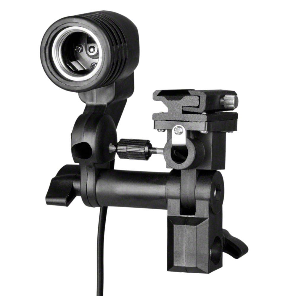 Der Schirmhalter für einen Synchroblitz ist ideal für alle Synchronblitzlampen und Spirallampen mit E27 Sockel bis max. 250 Watt. Er ist um 360° drehbar und 180° schwenkbar und somit extrem flexibel. Der Ein- und Ausschalter befindet sich direkt am Gehäuse. Wenn Sie mit Kompaktblitz fotografieren, eignet sich die Lampenhalterung ideal zur Montierung einer Spirallampe als Einstelllicht.