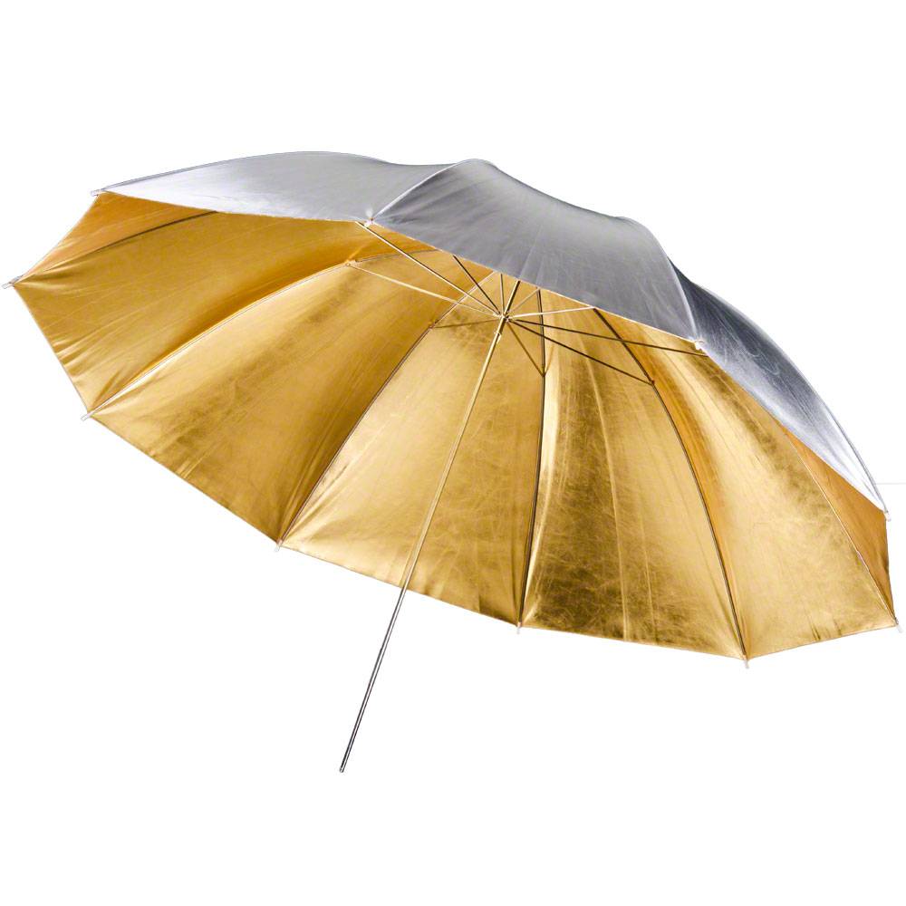 Zwei Reflexschirme in einem Dieser Schirm von walimex pro ist besonders praktisch, denn er ist zugleich goldener und silberner Reflexschirm. Er verfügt über zwei Reflexflächen: einer silbern und einer golden beschichteten. Um zwischen den beiden zu wechseln, wenden Sie einfach die Reflexflächen. Ideal als Effektlicht in der Porträt- und Produktfotografie Der 2in1 Reflexschirm ist besonders gut als Effektlicht in der Porträt- und Produktfotografie geeignet. Dank seiner beiden Reflexflächen kann er je nach Bedürfnis mit der goldenen Reflexfläche für eine warme Lichtcharakteristik oder mit der silbernen Reflexfläche für eine härtere Lichtcharakteristik eingesetzt werden. Hervorragende Verarbeitung Der Schirm ist äußerst hochwertig verarbeitet und besticht mit seiner edlen Optik. Sowohl die Spitze als auch das Gestell sind aus Metall gefertigt, was für eine höhere Stabilität und somit für eine längere Lebensdauer sorgt. Das metallene Stielende ist verstärkt, wodurch es leichter in den Reflektorhalter am Studioblitzgerät eingeführt werden kann.