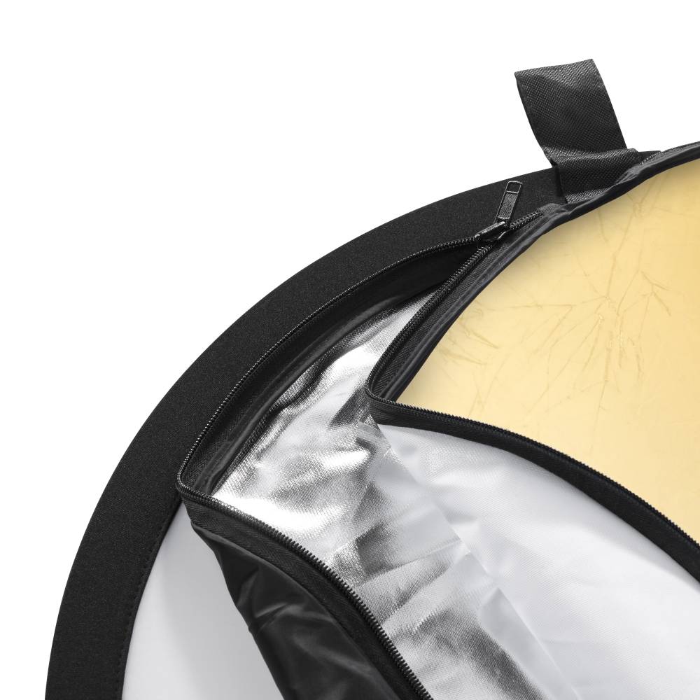 Und das mit nur einem einzigen Reflektor! Die Diffusorhülle kann von Innen nach Außen gedreht werden und wechselt somit 'im Handumdrehen' die Oberfläche von Silber/Gold zu Schwarz/Weiß. Für die Verwendung als Diffusor legen Sie die mit einem Reißverschluss sicher verschließbare Hülle einfach bei Seite. Dank der integrierten Schlaufe können Sie den Reflektor überall aufhängen. Besonders praktisch: komplett verpackt bringt es der Faltrefleltor gerade einmal auf einen Durchmesser von 21,7 cm und lässt sich somit problemlos überall hin mitnehmen. Die Transporthülle ist selbstverständlich im Lieferumfang enthalten.