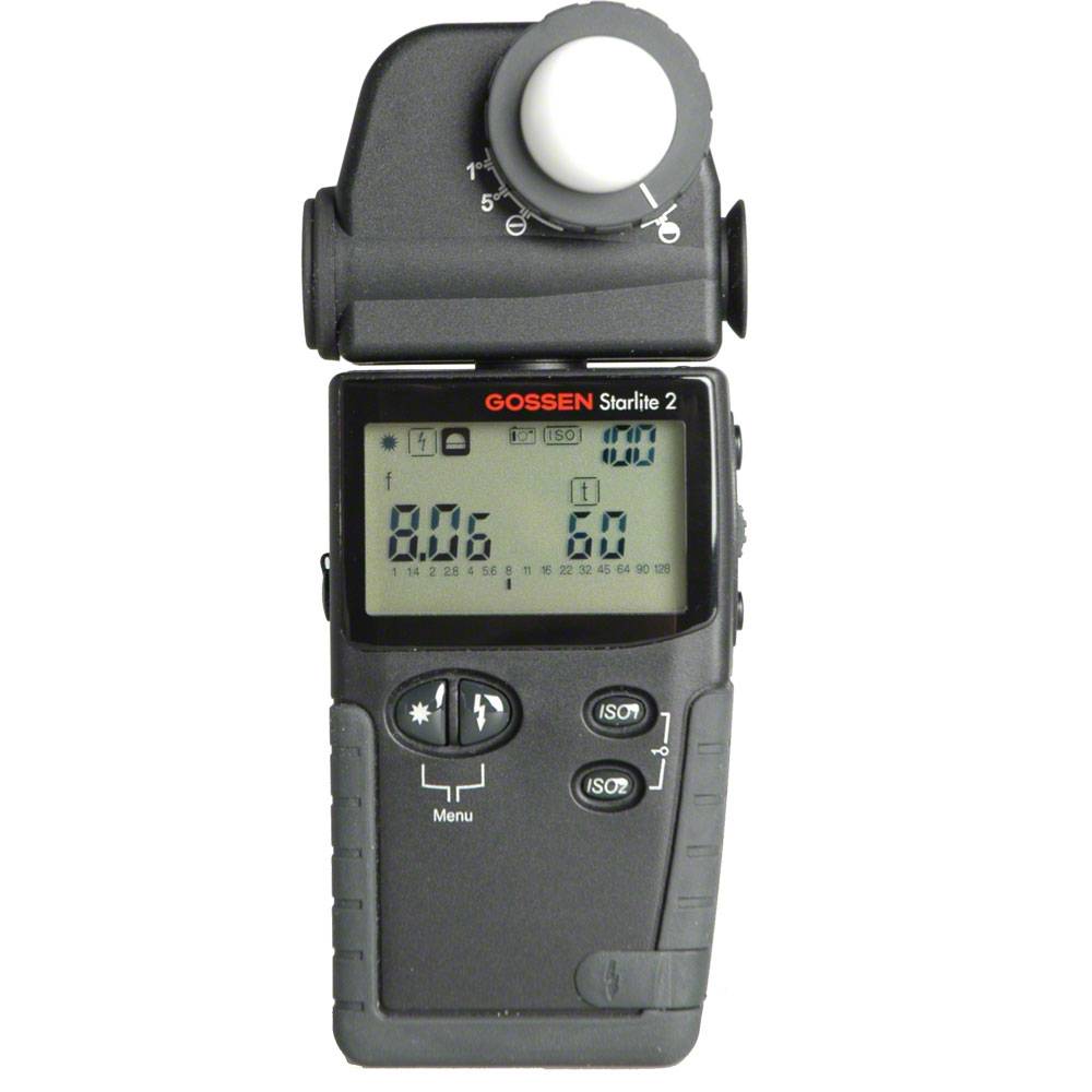 Der Starlite 2-Belichtungsmesser ist das vielseitige Hochleistungsgerät von Gossen und verkörpert einen echten Multifunktions-Belichtungsmesser. In ihm wurden ein Belichtungsmesser für Dauer- und Blitzlicht, ein CINE-Meter für Filmer, sowie ein Messgerät für Beleuchtungstechnik und Fotometrie vereint. Dabei wurde die übersichtlichkeit der Bedienelemente und des digitalen Anzeigefeldes selbstverständlich gewahrt. Funktionen, die über das alltägliche Messen hinaus benötigt werden, können individuell vom Nutzer zugeschaltet werden. Schnell und einfach lässt sich der Starlite 2 in einen vollwertigen CINE-Meter für den Filmer und dessen Bedürfnisse umschalten! Der Batteriedeckel ist nun gefedert und somit haben sie leichte Handhabung die Batterien zu wechseln.