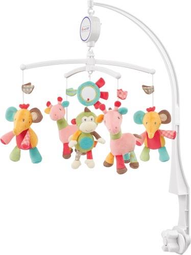 Die Spieluhr dreht die Figuren langsam im Kreis und wiegt Ihr Baby sanft in den Schlaf. Die weichen Greiffiguren können einzeln abgenommen und zum Spielen verwendet werden. Die weichen Farben und Strukturen des Musik-Mobiles üben zusätzlich erste optische Reize auf Ihr Baby aus und sorgen dafür, dass es sich erstmals mit seiner Umgebung beschäftigt- Details: Fürs Kinderbettchen, Größe ca. Ø 40 cm, Obermaterial: Softvelours/Baumwolle, Füllung: Polyesterwatte, Waschanleitung: Figuren abnehmbar und bei 30°C maschinenwaschbar