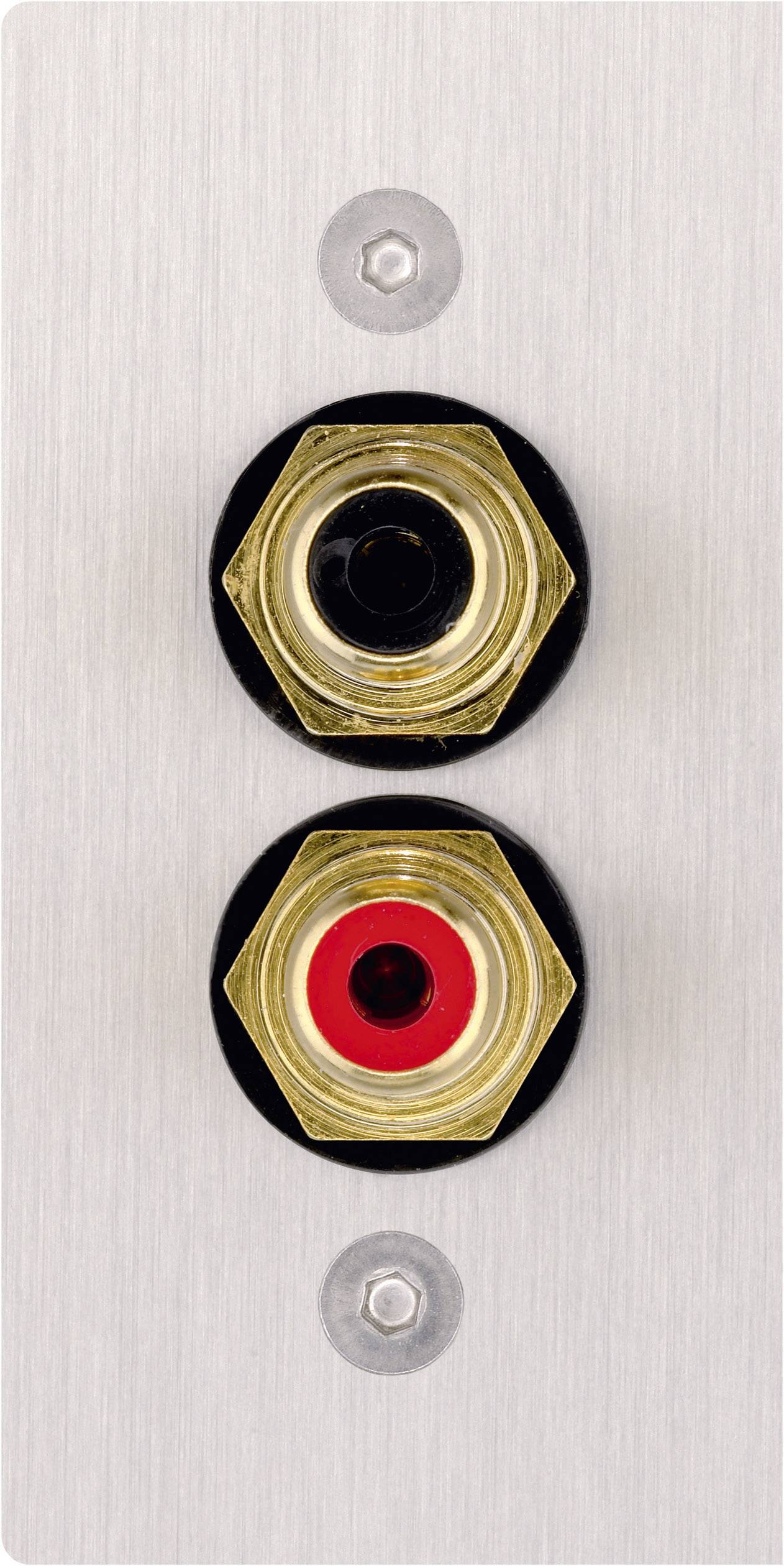 Premium AV Blende mit zwei Cinch-Einbaubuchsen mit vergoldeten Kontakten z. B. für den Anschluss von Cinch-Leitungen für die klassische Übertragung von Audiosignalen. Die Konfektion erfolgt über einen Lötanschluss.