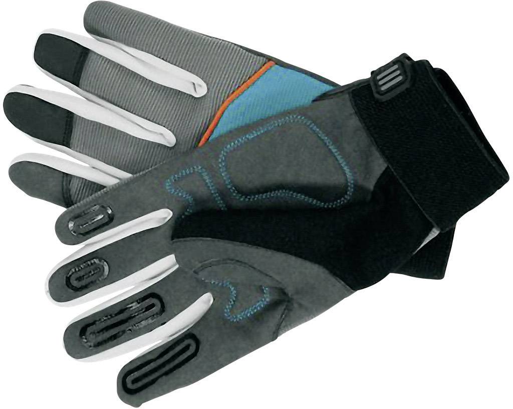 Mit dem GARDENA Gerätehandschuh liegen Arbeitsgeräte sicher in der Hand. Innovative Beschichtungen an den Fingerinnenflächen gewährleisten dabei abrutschsicheren Halt. Stoßdämpfende Pads in den Handschuhinnenflächen sorgen für besten Komfort – auch und gerade dann, wenn Stöße mechanischer und motorbetriebener Gartengeräte gemildert werden sollen. Die spezielle Verarbeitung am Daumen optimiert den Sitz und sorgt für längere Lebensdauer und sicheren Halt. Gerade auch dann, wenn z. B. mit Äxten, Hecken- oder Astscheren gearbeitet wird. Insgesamt ist der Handschuh aus speziellem, atmungsativem Stoffmaterial gefertigt, das schwitzigen Händen vorbeugt. Wenn man beim Arbeiten dennoch ins Schwitzen kommt, dann ist der praktische, in den Handschuh am Daumen integrierte Schweißabwischer immer griffbereit. Die robuste Stulpe am Handgelenk ist verstellbar und schützt sowohl vor Schmutz als auch vor Verletzungen.