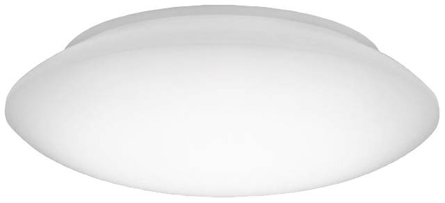 Runde LED-Anbauleuchte mit opaler PMMA-Wanne. Zur Wand- oder Deckenmontage. Mit runder, sphärisch geformter, am Leuchtenkopf leicht abgeflachter Abdeckwanne, opal. Bemessungslichtstrom 1300 lm, Bemessungsleistung 10,50 W, Leuchten-Lichtausbeute 123 lm/W. allgemeiner Farbwiedergabeindex (CRI) Ra größer als 80. Farborttoleranz (initial MacAdam) = 3 SDCM, Mittlere Bemessungslebensdauer L80(tq 25 °C) = 50.000 h. Leuchtenkörper aus Stahlblech. (RAL 9016). Durchmesser der Abdeckwanne Ø 320 mm, Leuchtenhöhe 84 mm. Gewicht: 0,8 kg. Zulässige Umgebungstemperatur (ta): - +25 °C. Schutzklasse (EN 61140): I, Schutzart (DIN EN 60529): IP40, Stoßfestigkeitsgrad nach IEC 62262: IK02, Prüftemperatur Glühdrahttest gemäß IEC 60695-2-11: 650 °C. Mit elektronischem Betriebsgerät, schaltbar.