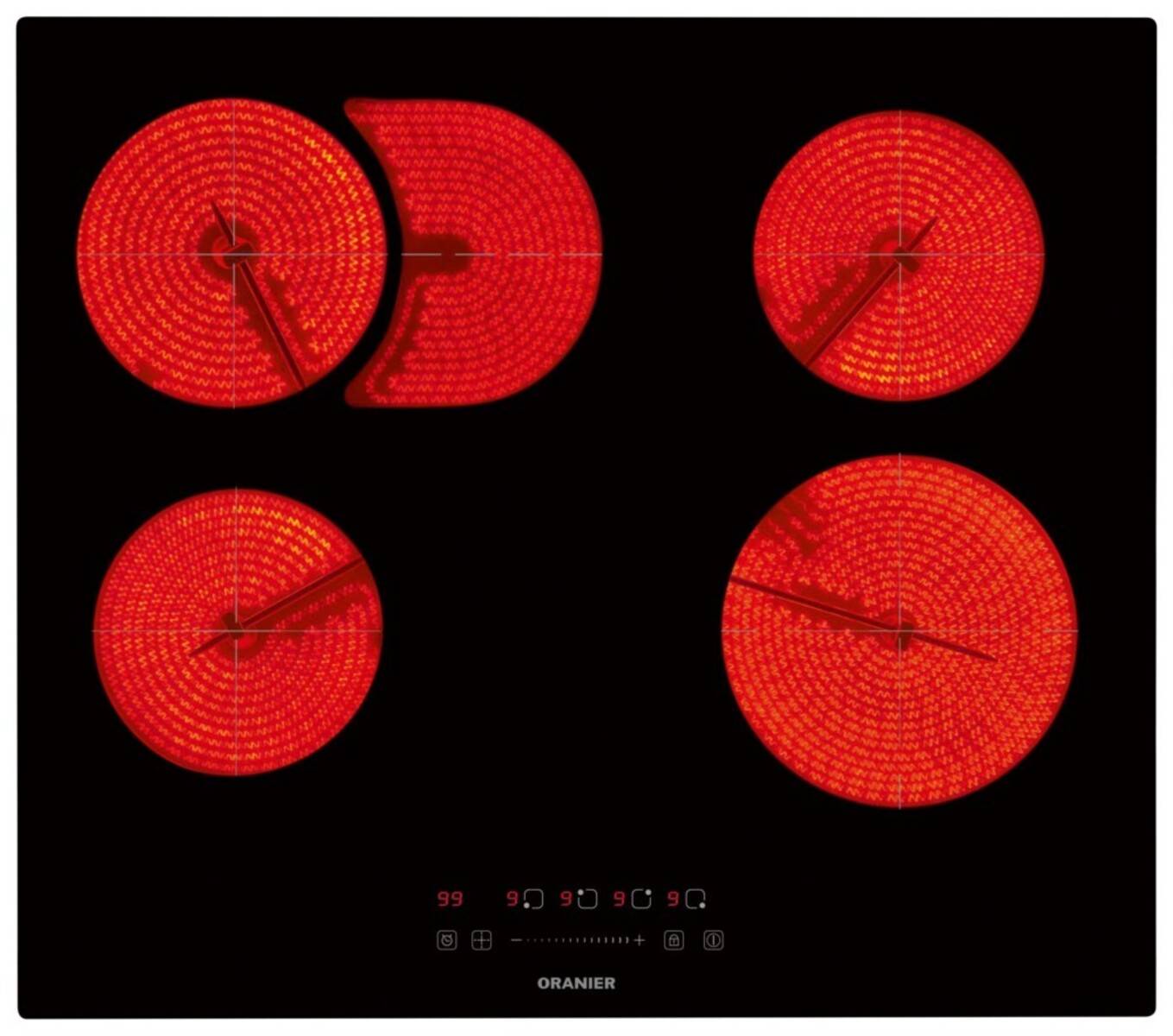 Hilight-Elektro-Kochfeld mit Slider, 78 cm, Kindersicherung, Überlaufschutz, Überhitzungsschutz, Restwärmeanzeige, Betriebsdauerbegrenzung, 9 Leistungsstufen je Kochzone, 4-fach Timer (max. je 99 Minuten), 4 energiegeregelte Kochzonen, leistungsstark und schnell