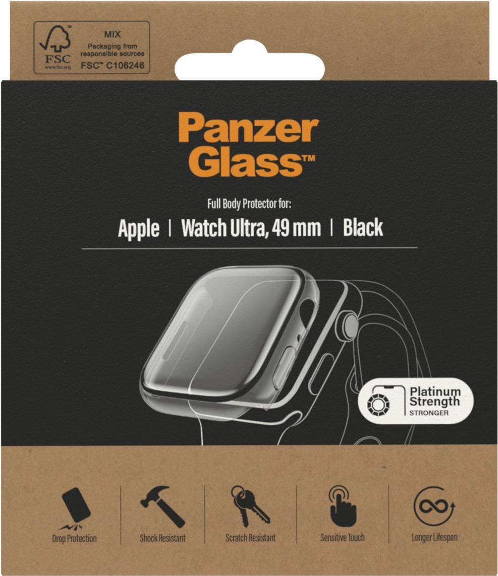 PanzerGlass - Bildschirmschutz für Smartwatch - komplettes Gehäuse - Glas - Rahmenfarbe schwarz - für Apple Watch Ultra (49 mm)