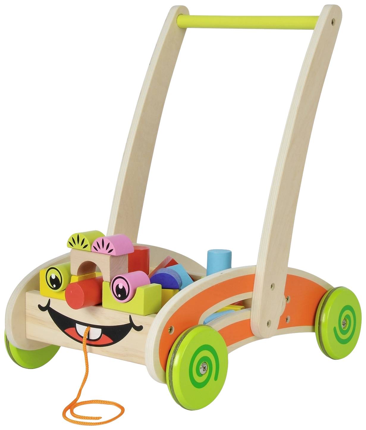 Eichhorn Lauflernwagen: Der hochwertige Lauflernwagen von Eichhorn wurde speziell für Kinder entwickelt, die Ihre ersten Schritte wagen. Durch die Gummieinlagen in den Rädern läuft der Wagen auf jedem Untergrund stabil und leise. Die ausgeklügelte Konstruktion mit einer Griffhöhe von ca. 48 cm unterstützt Kinder bei den ersten Gehversuchen und bietet gleichzeitig Stauraum für 35 lustig bedruckte Bausteine, die ebenfalls im Set enthalten sind. Legt man die Bausteine an der Vorderseite des Wagens in der richtigen Reihenfolge aufeinander, entsteht ein lustiges Gesicht. An der Schnur kann der kleine Wagen auch hinterhergezogen werden. Für Kinder ab einem Jahr geeignet. Der Eichhorn Lauflernwagen ist teilmontiert.