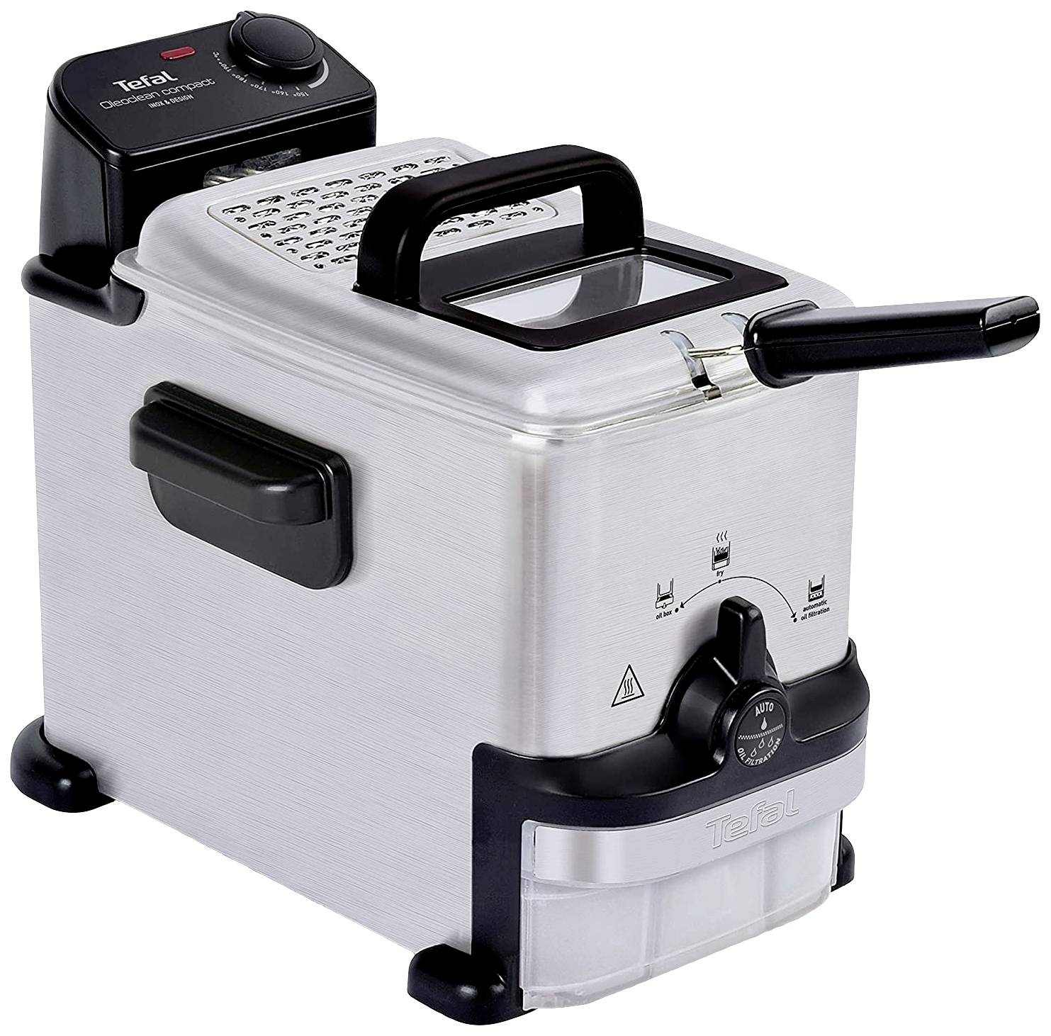 Oleoclean, eine einzigartige, international patentierte Technologie Oleoclean Compact 2L ist durch die automatische Ölfiltration einzigartig. Sobald das verwendete Öl abgekühlt ist, wird es automatisch durch ein Sieb gegossen, um anschließend sauber in den darunter befindlichen Öl-Aufbewahrungsbehälter abgelassen zu werden. So bleibt Ihr Öl immer sauber und kann mehrfach genutzt werden. Das 2-lFassungsvermögen ermöglicht die Zubereitung von bis zu 800 g Lebensmitteln. Die Fritteuse hat einen abnehmbaren Behälter aus Edelstahl im robusten Design, der sich einfach reinigen lässt. Während des Frittierens kann das Gerät mit dem Deckel verschlossen werden. Der Deckel hat einen permanenten Metallfilter und ein großes Sichtfenster. Oleoclean Compact ist eine semi-professionelle Fritteuse mit Kühlzonen-Technologie und einem frei im Frittierfett liegenden Heizelement (Edelstahl) für schnelleres Vorheizen und schnellste Temperaturregulierung_ Optimale Frittiertemperatur wird nach Zugabe des Frittierguts in kürzester Zeit erreicht (weniger Fett kann in das Frittiergut eindringen, Frittiergut wird knuspriger). Definitiv einer der besten Fritteusen von TEFAL für alle Fans von Pommes frites.