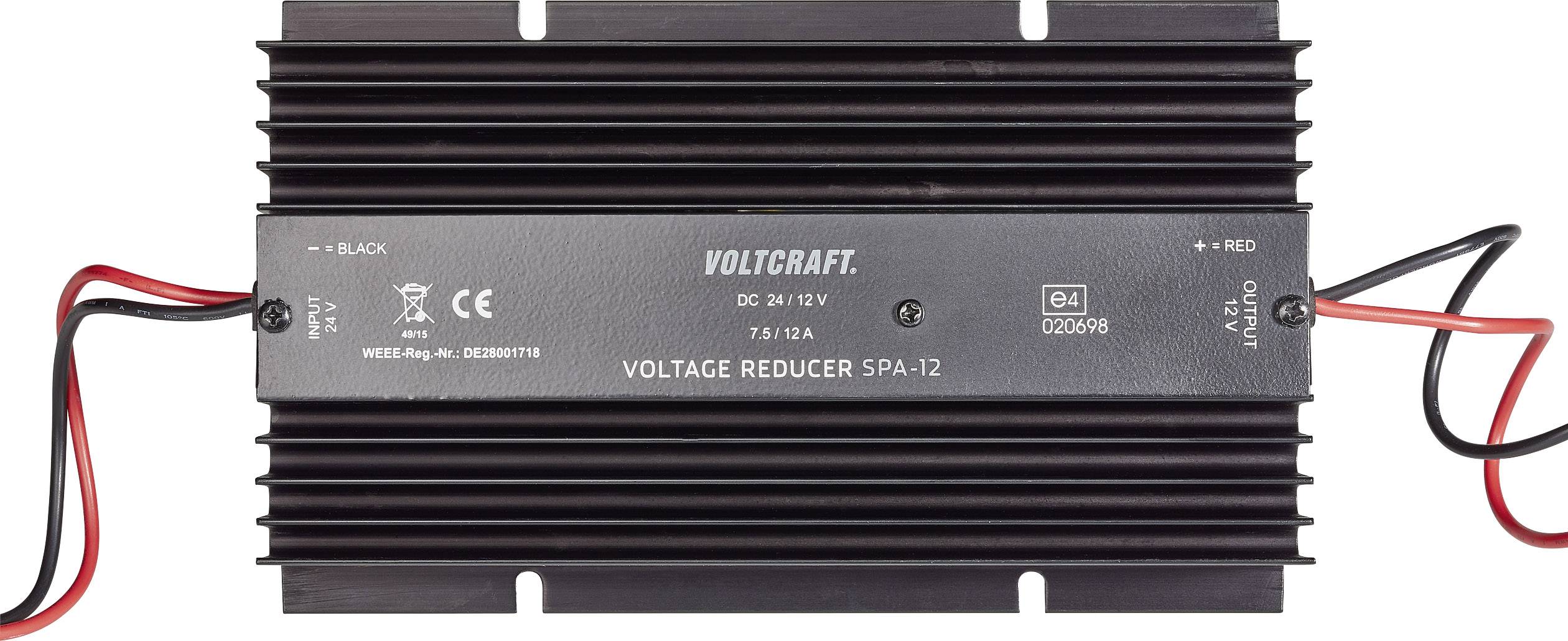 Der Gleichspannungswandler SPA-12 ermöglicht den Betrieb von 12 V-Verbrauchern, wie z.B. Halogenlampen, Radiogeräte und tragbare Fernsehgeräte mit 12 V-Anschluss und andere 12 V/DCGeräte an einem 24 V/DC-Batteriesystem/-netz. Dazu wird die 24 V-Gleichspannung mittels eines kompensierten Spannungsstabilisators und parallelgeschalteten Längstransistoren auf die Hälfte, also auf 12 V/DC, reduziert/umgewandelt. Der Eingang des DC/DC-Wandlers ist mittels einer Diode und einer Schmelzsicherung verpolungsgeschützt. Der Ausgang ist nicht abgesichert.
