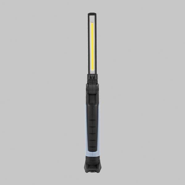 Gehäuse aus 2-Komponenten-Kunststoff und Aluminium, COB- (Front) undSMD-LED (Top) 6500 K, Druck-/Drehschalter, Front-LED: dimmbar 700 - 60lm, Top-LED: 120 lm, Li-Ion Akku 2500 mAh, Leuchtdauer: Front-LED 2 - 16h, Top-LED: 10 h, Schutzart: IP 54, Lieferumfang: Ladegerät mit USB-CKabel