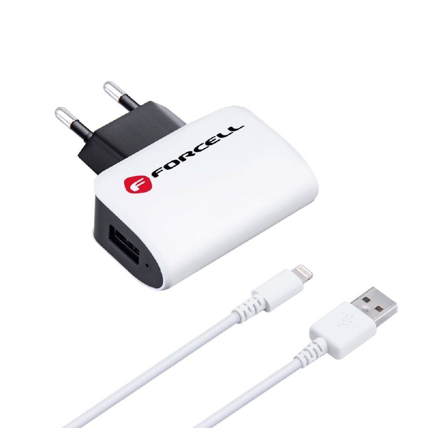 Forcell NETZ-Ladegerät für iPhone-Anschluss 8-pin Wandladegerät Überhitzung und Stoßspannungen geschützt Weiß