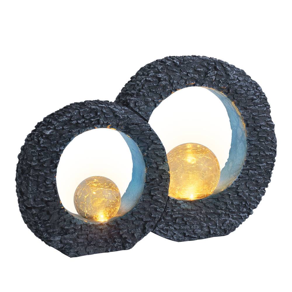 Die LED Kugeln im Inneren der Solarleuchte besitzen einen Feuereffekt und flackern mit orangefarbenem Licht in die Nacht hinein, dadurch erscheint die Leuchte in einem Goldschimmer.