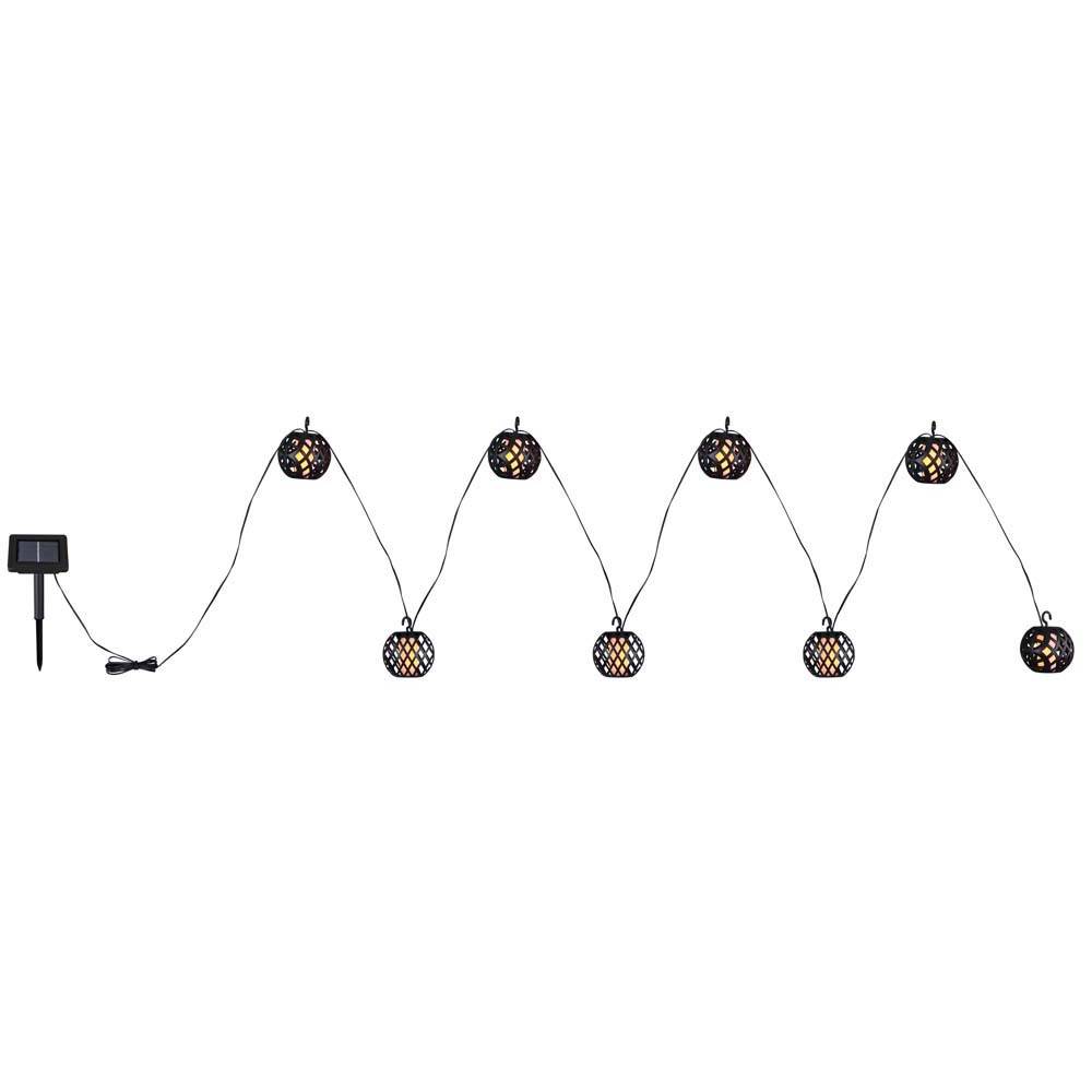 Dank der Schutzart IP44 können Sie diese Lichterkette ohne Bedenken im Freien platzieren. Acht der Kunstoffleuchten (Durchmesser je 7 cm) zuzüglich des Kabels haben eine Gesamtlänge von 4,1 m. Die zylinderförmigen, weißen LED-Leuchtmittel im Inneren der Laternen werden solarbetrieben (Lichtfarbe 1700 Kelvin) und verleihen ihrem Außenbereich eine angenehme Atmosphäre wie bei Kerzenlicht.