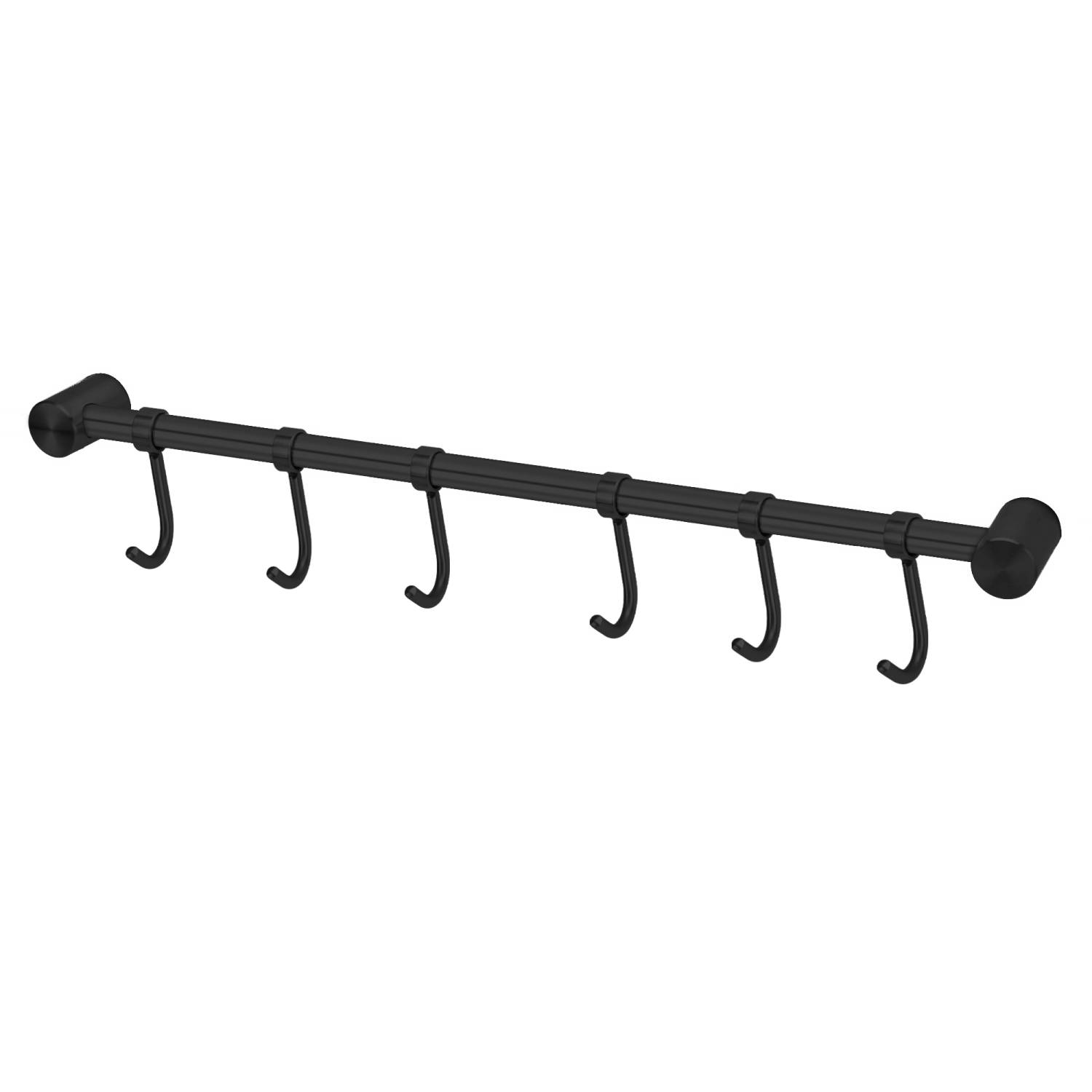 Intirilife Edelstahl Hängeleiste mit 6 Haken in Schwarz - Hakenleiste Küchenstange Wandhalterung