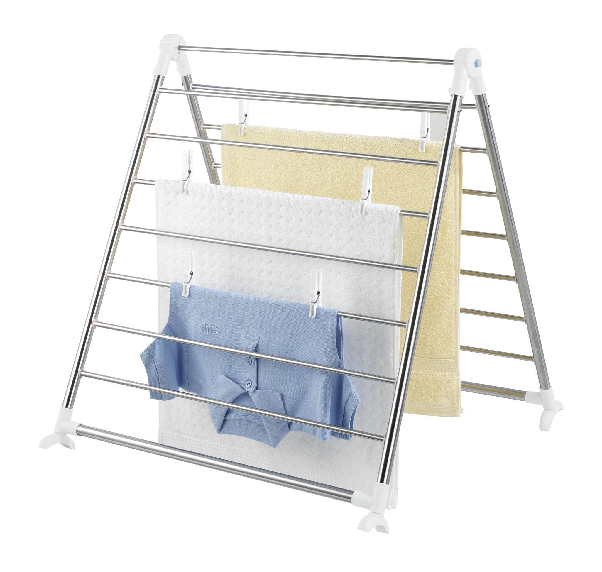Trotz des geringen Gewichts ist der Wäschetrockner aufgrund seiner Spezial-Kunststoff-Füße standfest. Bei Nichtgebrauch kann er zusammenklappt werden und platzsparend verstaut.