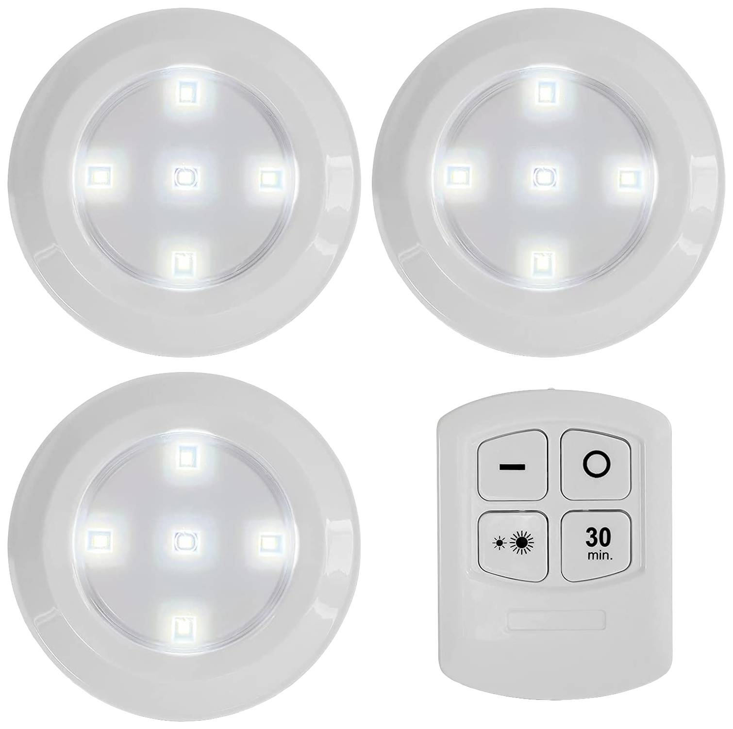 LED Touch-Leuchten 3er-Set + Fernbedienung, Tri-Lux Unterbauleuchten mit 2 Lichtmodi und Timer, Batterie betrieben, selbstklebend, hellweiß Eaxus.