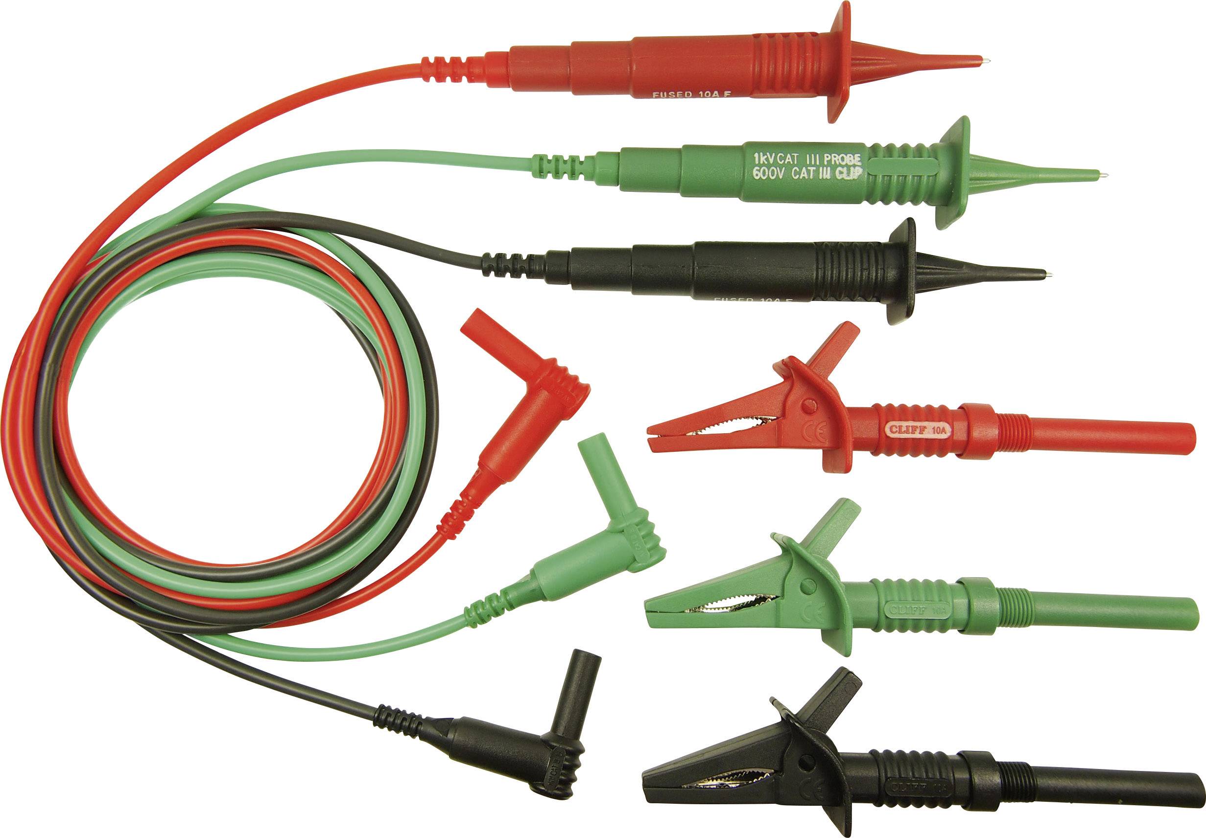Cliff CIH3021 Sicherheits-Messleitungs-Set [Stecker 4mm - Prüfspitze] 1.25m Rot, Schwarz, Grün