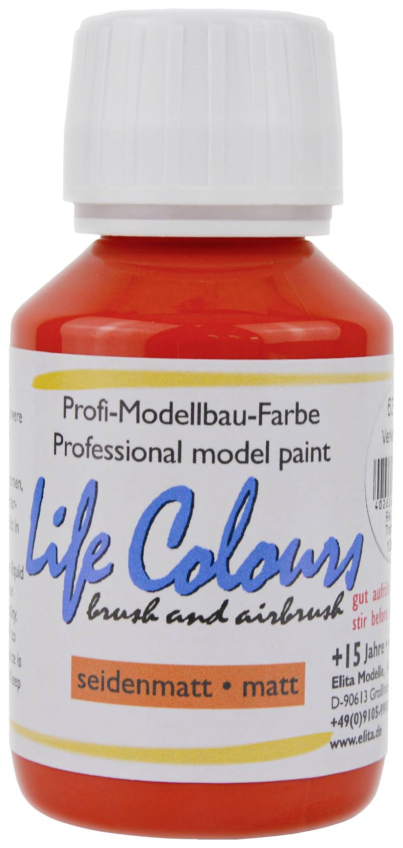 Life Colours Profi-Farblacke für den Modellbau. Hohe Deckkraft, satte Farben und beeindruckender Halt auf nahezu allen Oberflächen: Life Colours sind absolute Profi-Farblacke. Dabei sind Life Colours ganz einfach in der Handhabung und sehr vielseitig anwendbar. Mit Life Colours gelingen feine Lackierarbeiten mühelos. Die Top-Qualität der Farblacke ermöglicht einen präzisen, gleichmäßigen, dünnen und hochdeckenden Farbauftrag. Das Auftragen der Life Colours funktioniert optimal mit Pinsel und Airbrush-Spritzpistole. Life Colours Farblacke haben bei Lieferung eine hohe Viskosität, um eine präzise Verarbeitung des Farblacks mit dem Pinsel zu gewährleisten. Bei Verwendung der Life Colours mit der Airbrush sollte dem Farblack eine entsprechende Menge Elita Verdünner beigemischt werden. Aus 15 ml konzentriertem Farblack werden so bis zu 30 ml Airbrushfarbe, abhängig von Düsengröße und Einsatzzweck.