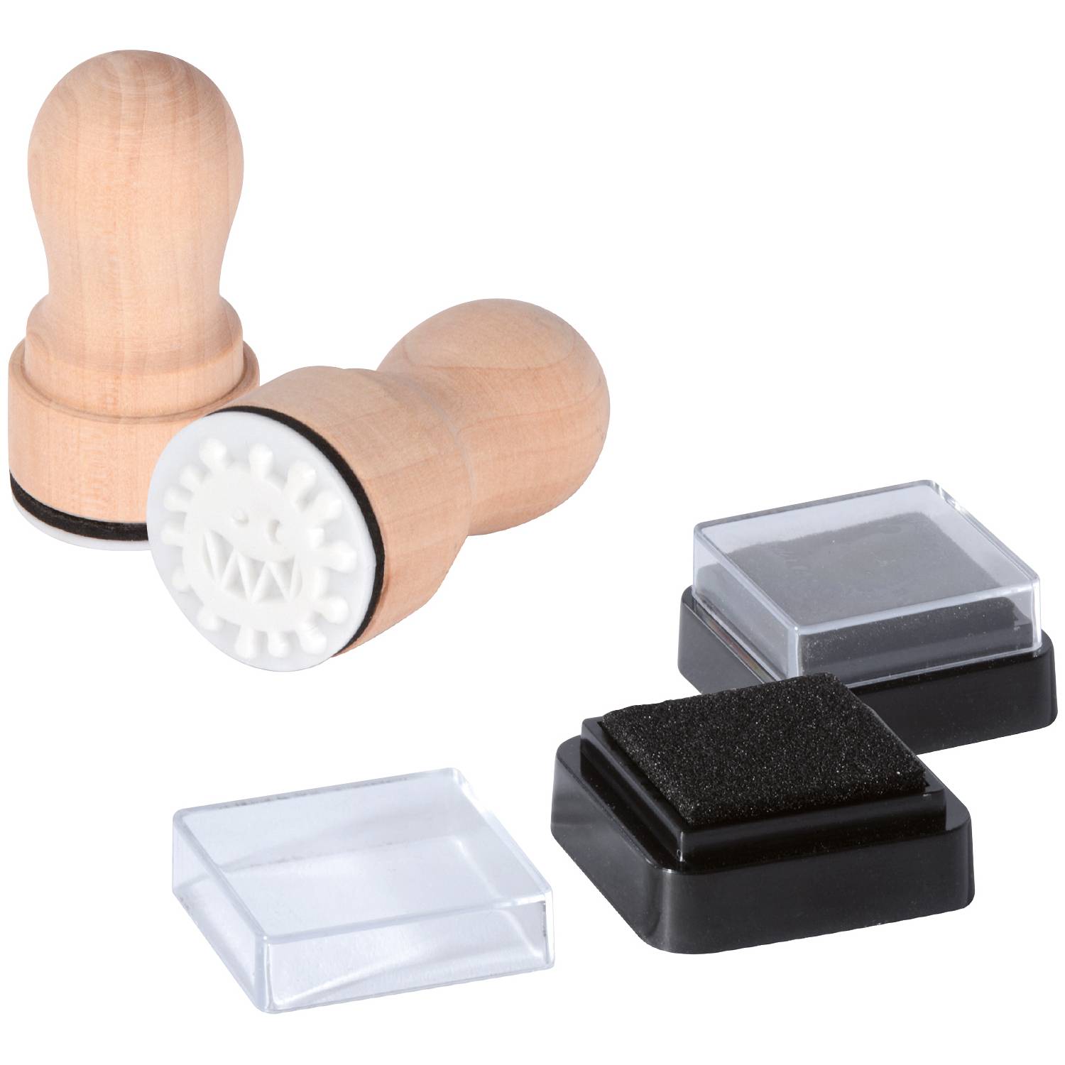 - Maße: Stempel: Ø 3 x 5,9 cm, Stempelkissen: 3,4 x 3,4 x 1,6 cm