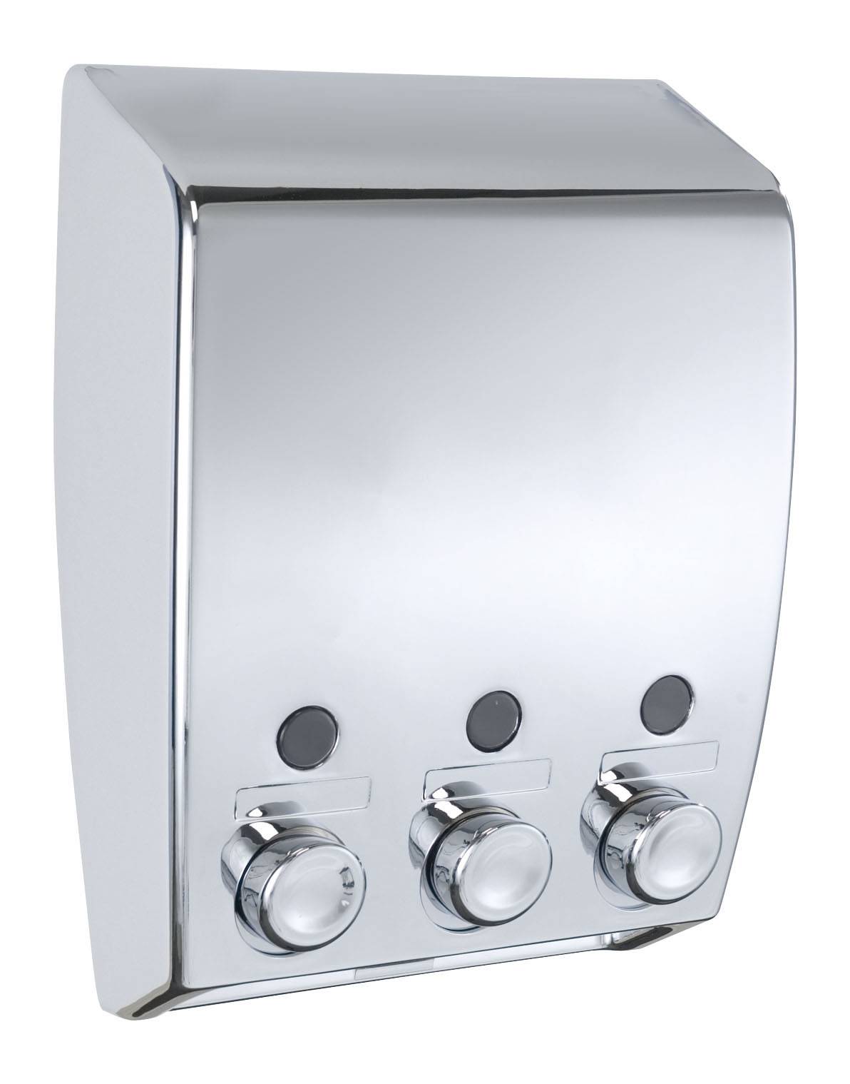 Der 3-Kammer Seifenspender Varese ist aus hochwertigem, verchromtem Kunststoff gefertigt und eignet sich ideal zur portionierten Seifenausgabe in Bad, Dusche und WC.