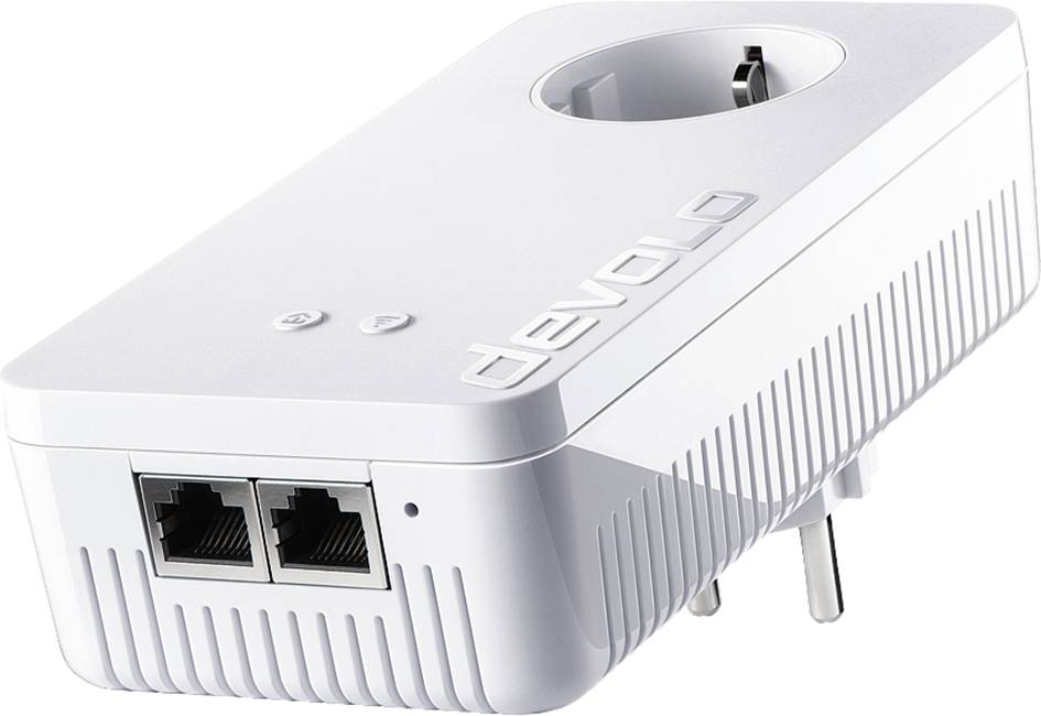 Beste Heimnetz-Verbindung dank Powerline-Technologie. WLAN aus jeder Steckdose. Einfach auspacken, einstecken, loslegen. · Endlich WLAN in ac-Geschwindigkeit: bis zu 1200 Mbit/s für Smartphone, Tablet, Laptop etc. · Powerline-Verbindung über die Stromleitung mit bis zu 1200 Mbit/s · devolo range+ Technology nutzt erstmals alle drei Leitungen des Stromkreises parallel für noch mehr Leistung und höhere Reichweite · Mit zwei integrierten Gigabit LAN-Anschlüssen für Ihre internetfähigen Geräte (Smart-TV, Spielekonsole, PC, etc.) · Mit der integrierten Steckdose geht kein Stromanschluss im Raum verloren · Die WiFi Move Technology verbindet automatisch mehrere Adapter zu einem WLAN-Netzwerk. Optimaler WLAN-Empfang, im gesamten Haus, voll automatisch.